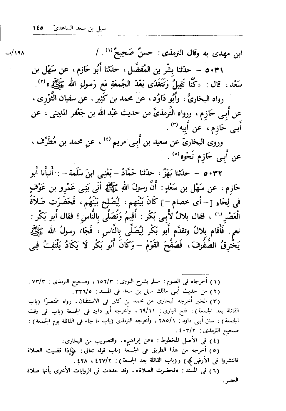 5031 - حدثنا بشر بن المفضل، حدثنا أبو حازم، عن سهل بن سعد، قال: «كنا نقيل ونتغذى بعد الجمعة مع رسول الله - صلى الله عليه وسلم -» (¬1) .