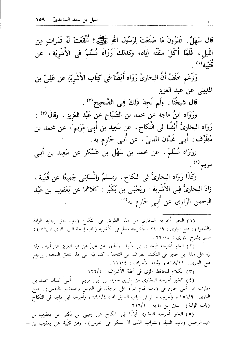 (¬4) الخبر أخرجه البخارى من طريق سعيد بن ابى مريم أبى غسان محمد بن مطرف عن ابى حازم في (باب قيام المرأة على الرجال في العرس وخدمتهم بالنفس) : فتح البارى: 9/ 151؛ وأخرجه مسلم في الباب السابق له: 4/ 691؛ وأخرجه ابن ماجه في النكاح (باب الوليمة) : سنن ابن ماجه: 1/ 616.