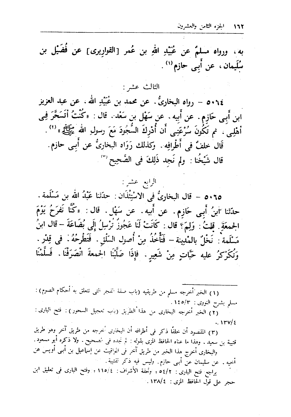 5064 - رواه البخارى، عن محمد بن عبيد الله، عن عبد العزيز بن أبى حازم، عن أبيه، عن سهل بن سعد، قال: «كنت أتسحر في أهلى، ثم تكون سرعتى أن أدرك السجود مع رسول الله - صلى الله عليه وسلم -» (¬1) .