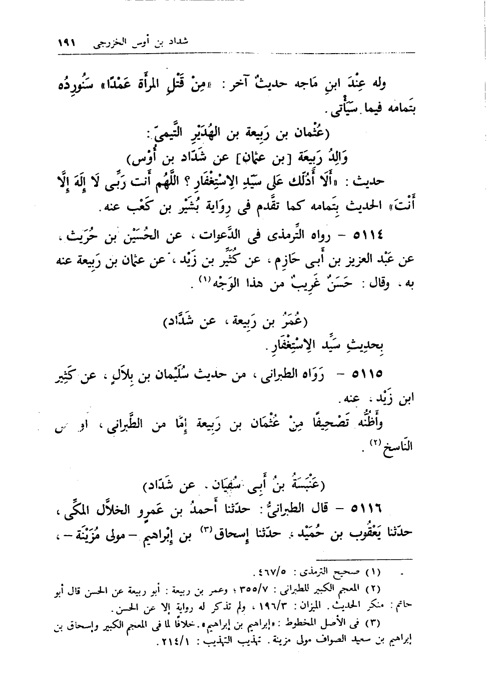 (¬2) المعجم الكبير للطبرانى: 7/ 355؛ وعمر بن ربيعة: أبو ربيعة عن الحسن قال أبو حاتم: منكر الحديث. الميزان: 3/ 196؛ ولم تذكر له رواية إلا عن الحسن.