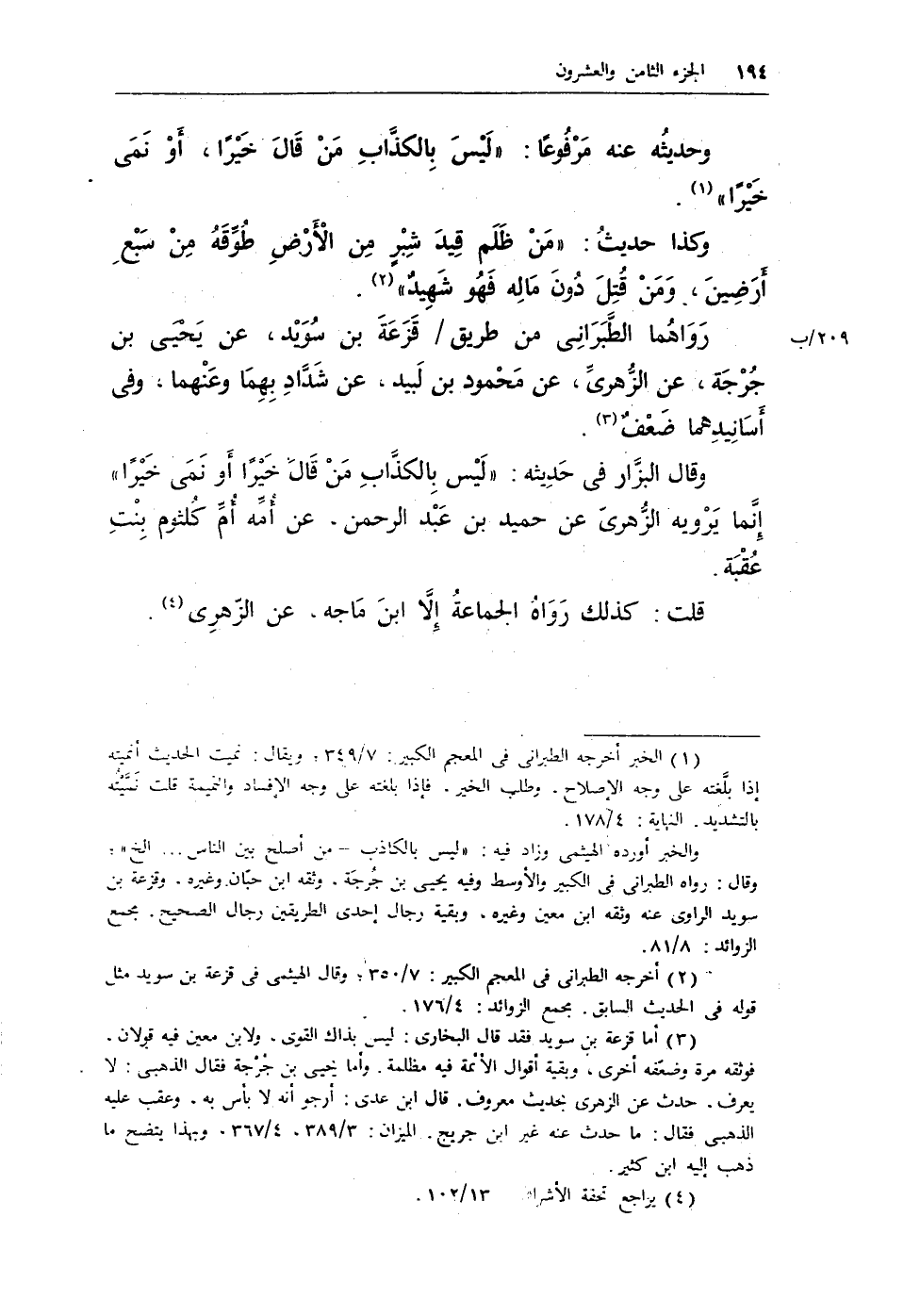 والخبر أورده الهيثمى وزاد فيه: «ليس بالكاذب - من أصلح بين الناس ... الخ» ؛ وقال: رواه الطبرانى في الكبير والأوسط وفيه يحيى بن جرجة، وثقة ابن حبان وغيره، وقزعة بن سويد الراوى عنه وثقة ابن معين وغيره، وبقية رجال إحدى الطريقين رجال الصحيح. مجمع الزوائد: 8/ 81.