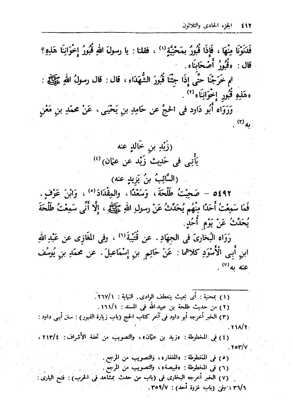 (¬3) الخبر أخرجه البخارى فى (باب من حدث بمشاهد فى الحرب) : فتح البارى: 6/36؛ وفى (باب غزوة أحد) : 7/359.