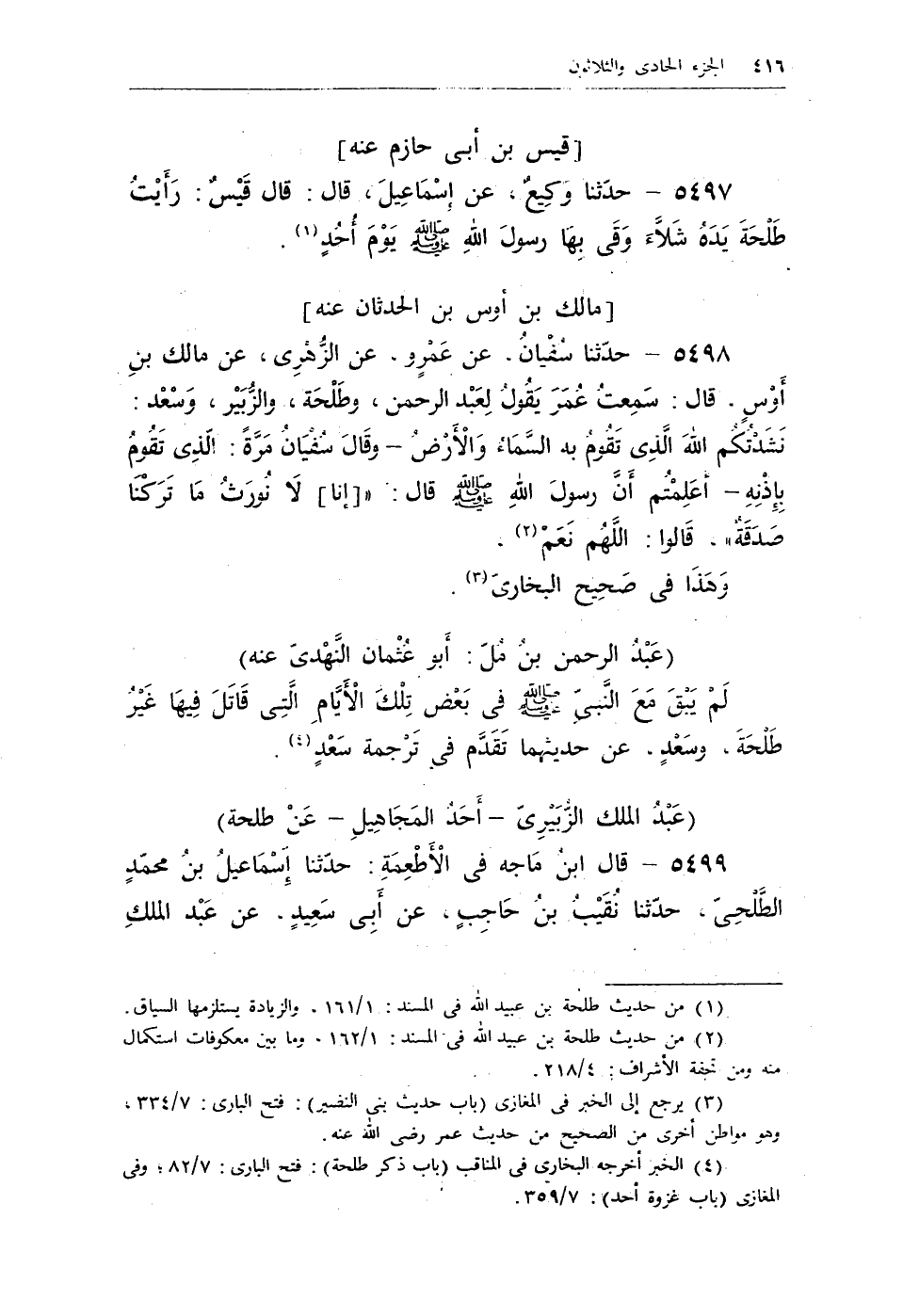 (¬2) من حديث طلحة بن عبيد الله فى المسند: 1/162. وما بين معكوفات استكمال منه ومن تحفة الأشراف: 4/218.