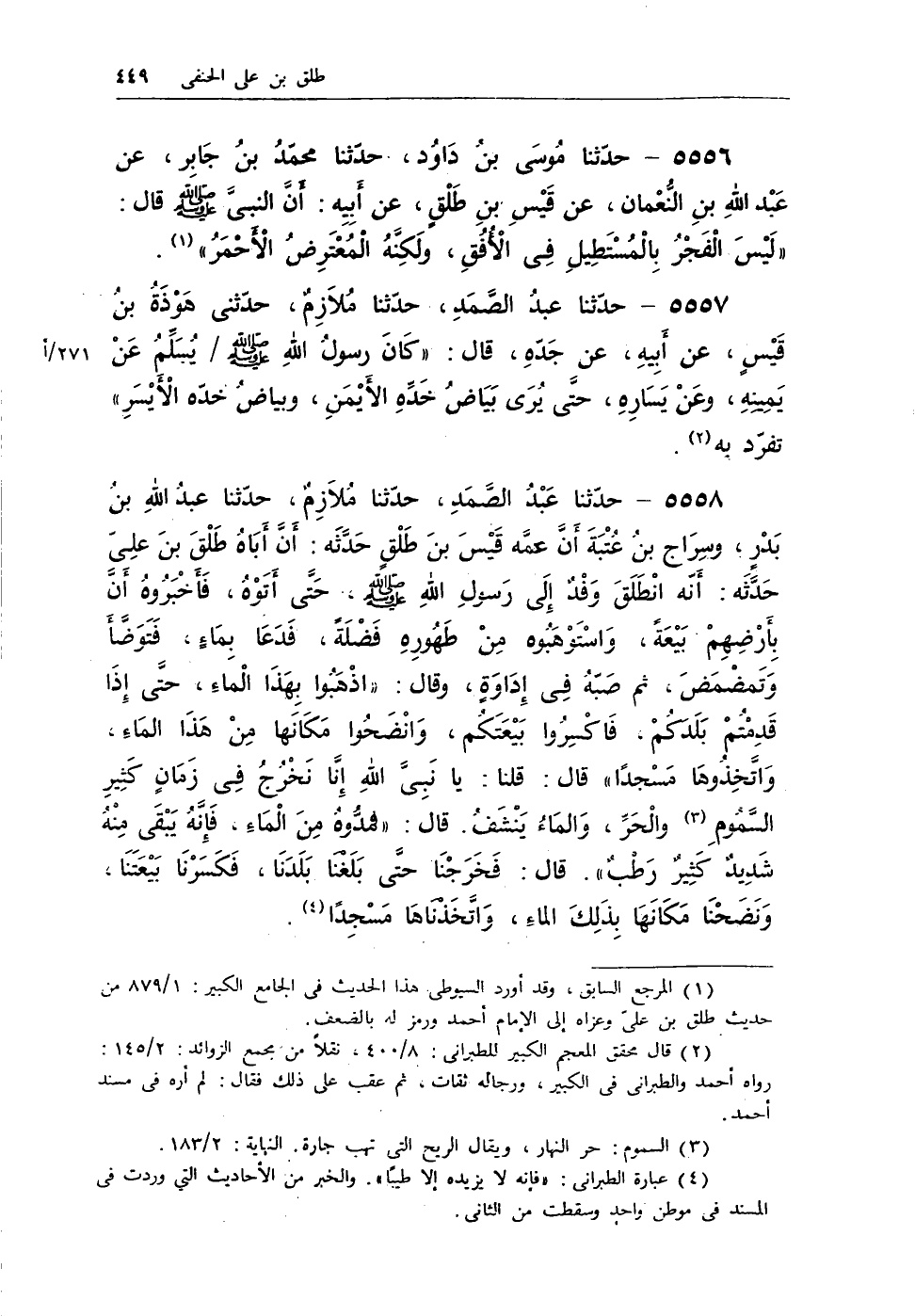 (¬1) المرجع السابق، وقد أورد السيوطى هذا الحديث فى الجامع الكبير: 1/879 من حديث طلق بن على وعزاه إلى الإمام أحمد ورمز له بالضعيف.