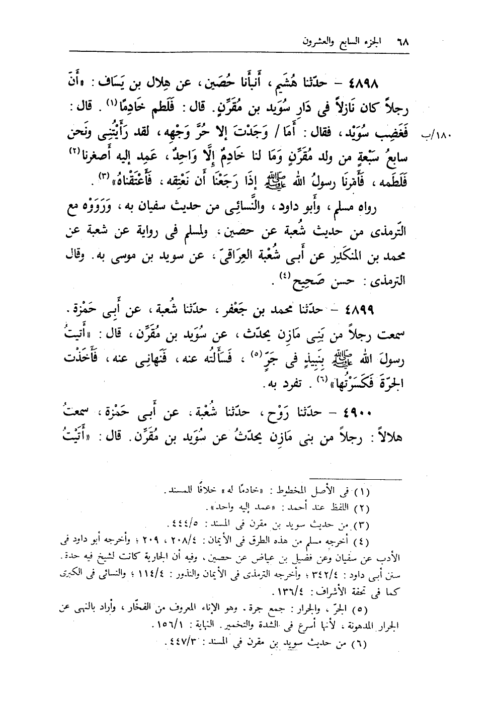 (¬6) من حديث سويد بن مقرن فى المسند: 3/ 447.