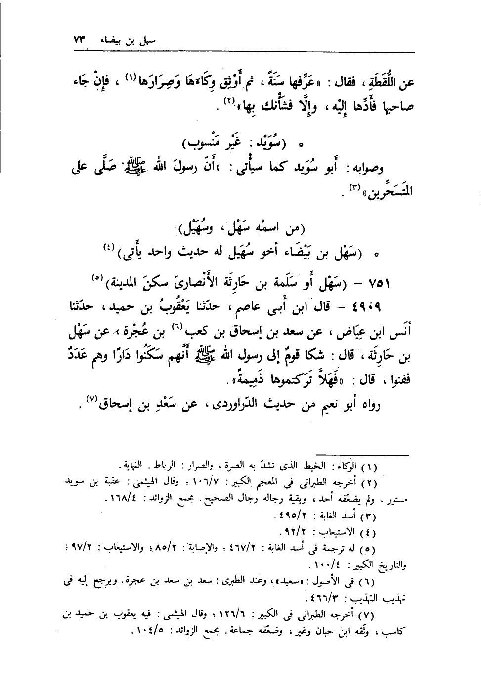(¬2) أخرجه الطبرانى في المعجم الكبير: 7/ 106؛ وقال الهيثمى: عقبة بن سويد مستور. ولم يضعّفه أحد، وبقية رجاله رجال الصحيح. مجمع الزوائد: 4/ 168.