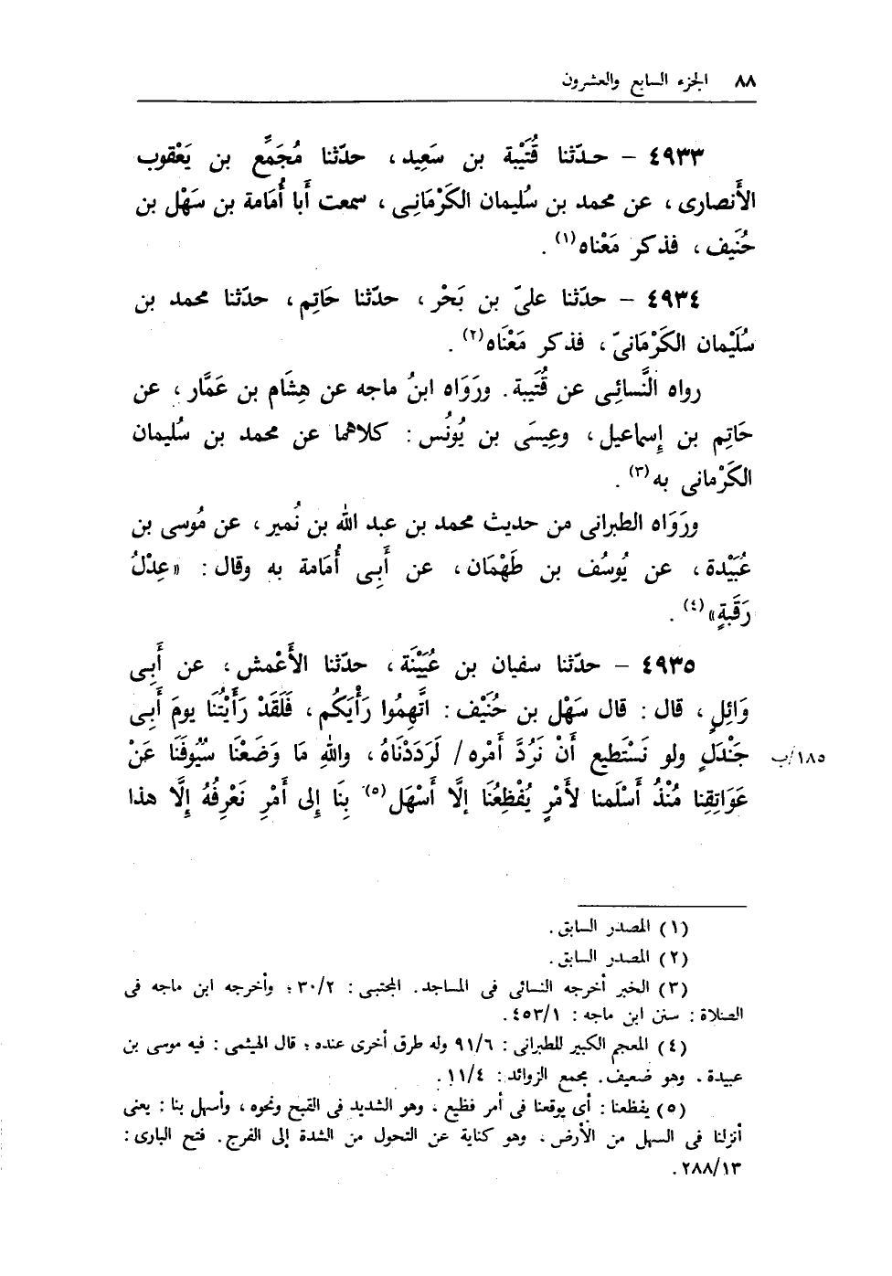 4934 - حدثنا على بن بحر، حدثنا حاتم، حدثنا محمد بن سليمان الكرمانى، فذكر معناه (¬2) .