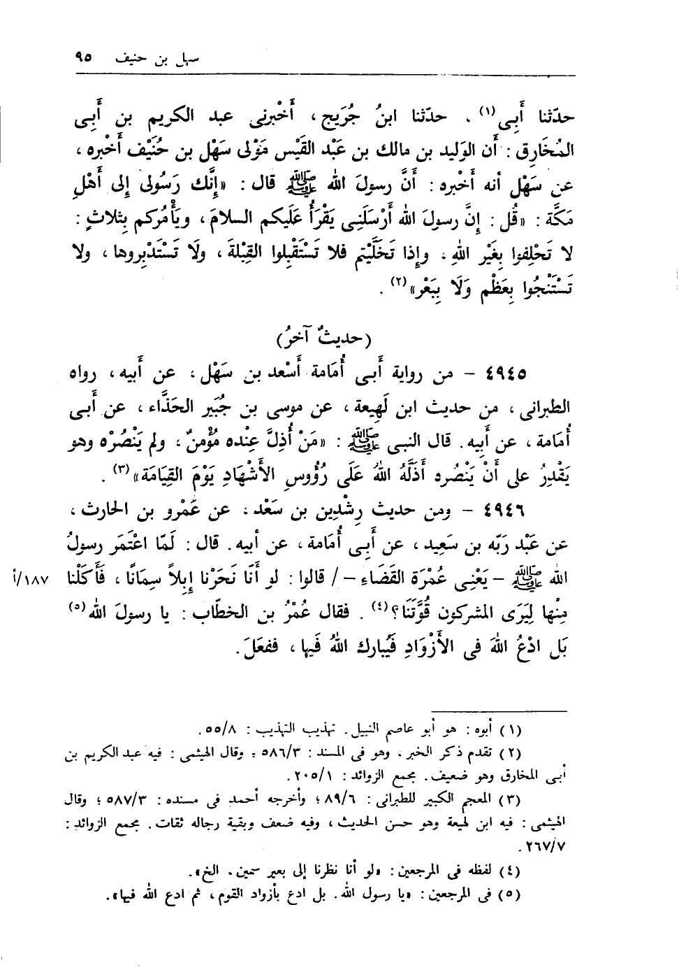 (¬2) تقدم ذكر الخبر، وهو في المسند: 3/ 586؛ وقال الهيثمى: فيه عبد الكريم بن أبى المخارق وهو ضعيف. مجمع الزوائد: 1/ 205.