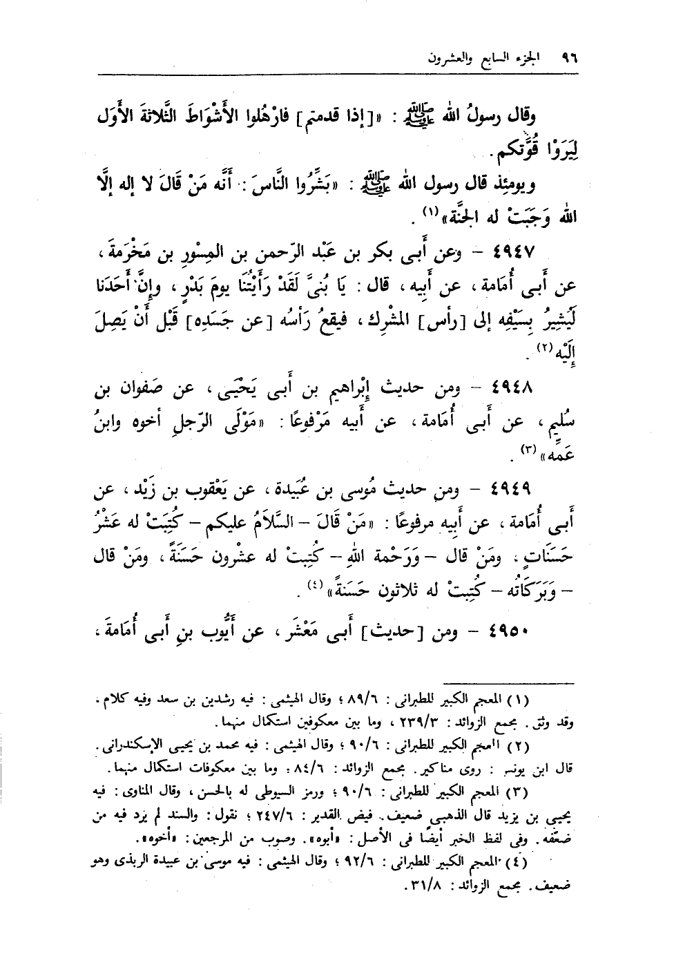 (¬3) المعجم الكبير للطبرانى: 6/ 92؛ وقال الهيثمى: فيه موسى بن عبيدة الربدى وهو ضعيف. مجمع الزوائد: 8/ 31.
