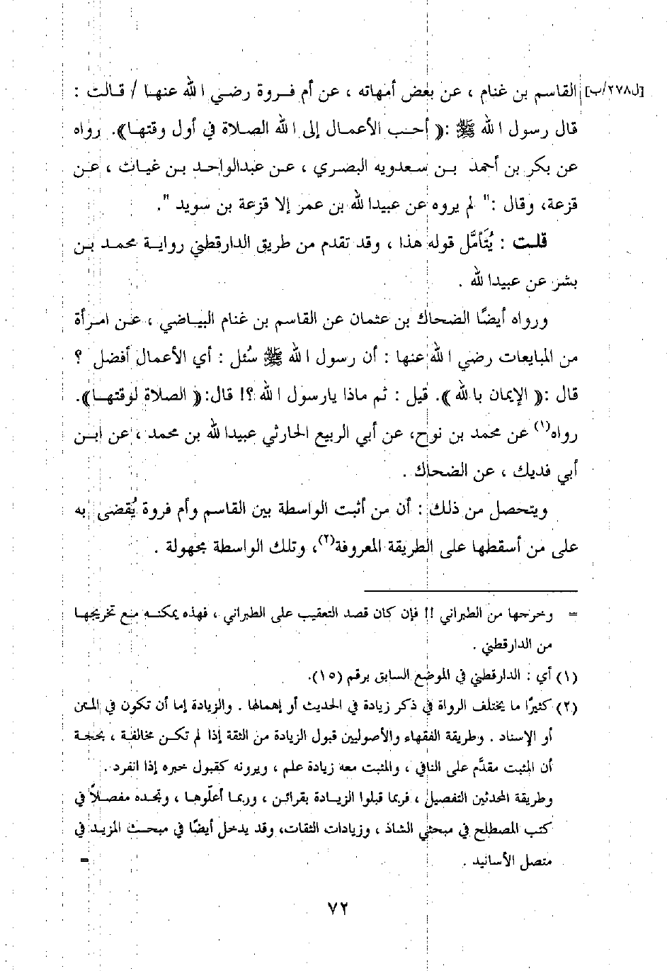 ويتحصل من ذلك: أن من أثبت الواسطة بين القاسم وأم فروة يقضى به على من أسقطها على الطريقة المعروفة، وتلك الواسطة مجهولة.