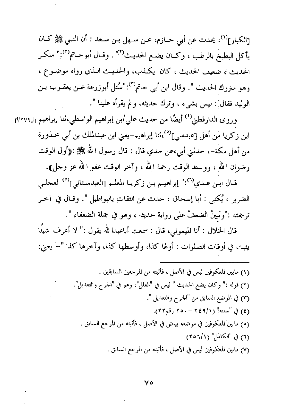 [الكبار]، يحدث عن أبي حازم، عن سهل بن سعد: أن النبي صلى الله عليه وسلم كان يأكل البطيخ بالرطب، وكان يضع الحديث". وقال أبو حاتم: "منكر الحديث، ضعيف الحديث، كان يكذب، والحديث الذي رواه موضوع، وهو متروك الحديث". وقال ابن أبي حاتم: "سئل أبو زرعة عن يعقوب بن الوليد فقال: ليس بشيء، وترك حديثه، ولم يقرأه علينا".