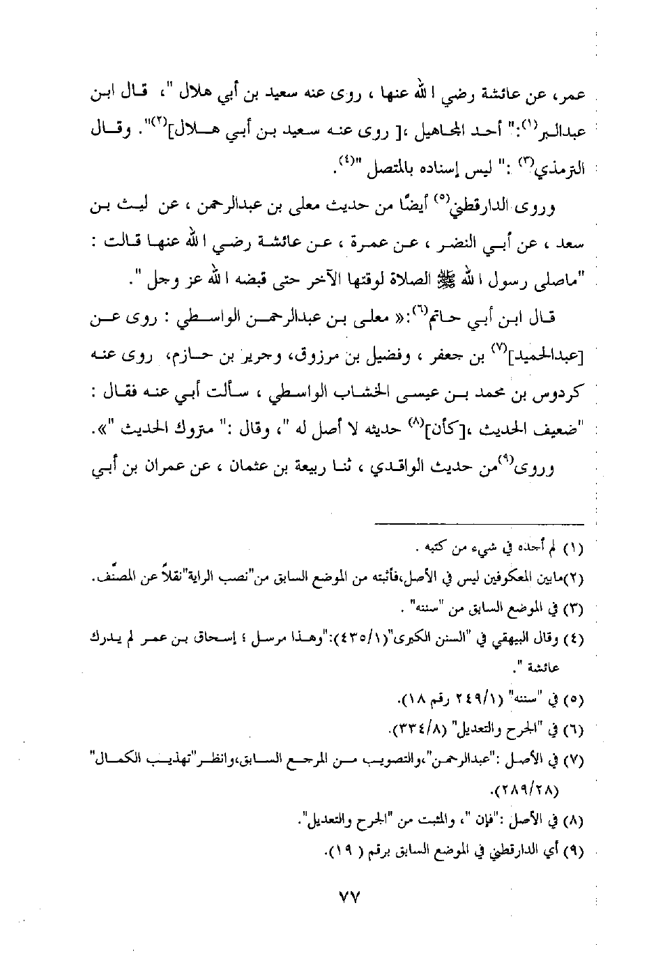 عمر، عن عائشة رضي الله عنها، روى عنه سعيد بن أبي هلال"، قال ابن عبد البر: "أحد المجاهيل، [روى عنه سعيد بن أبي هلال] ". وقال الترمذي: "ليس إسناده بالمتصل".