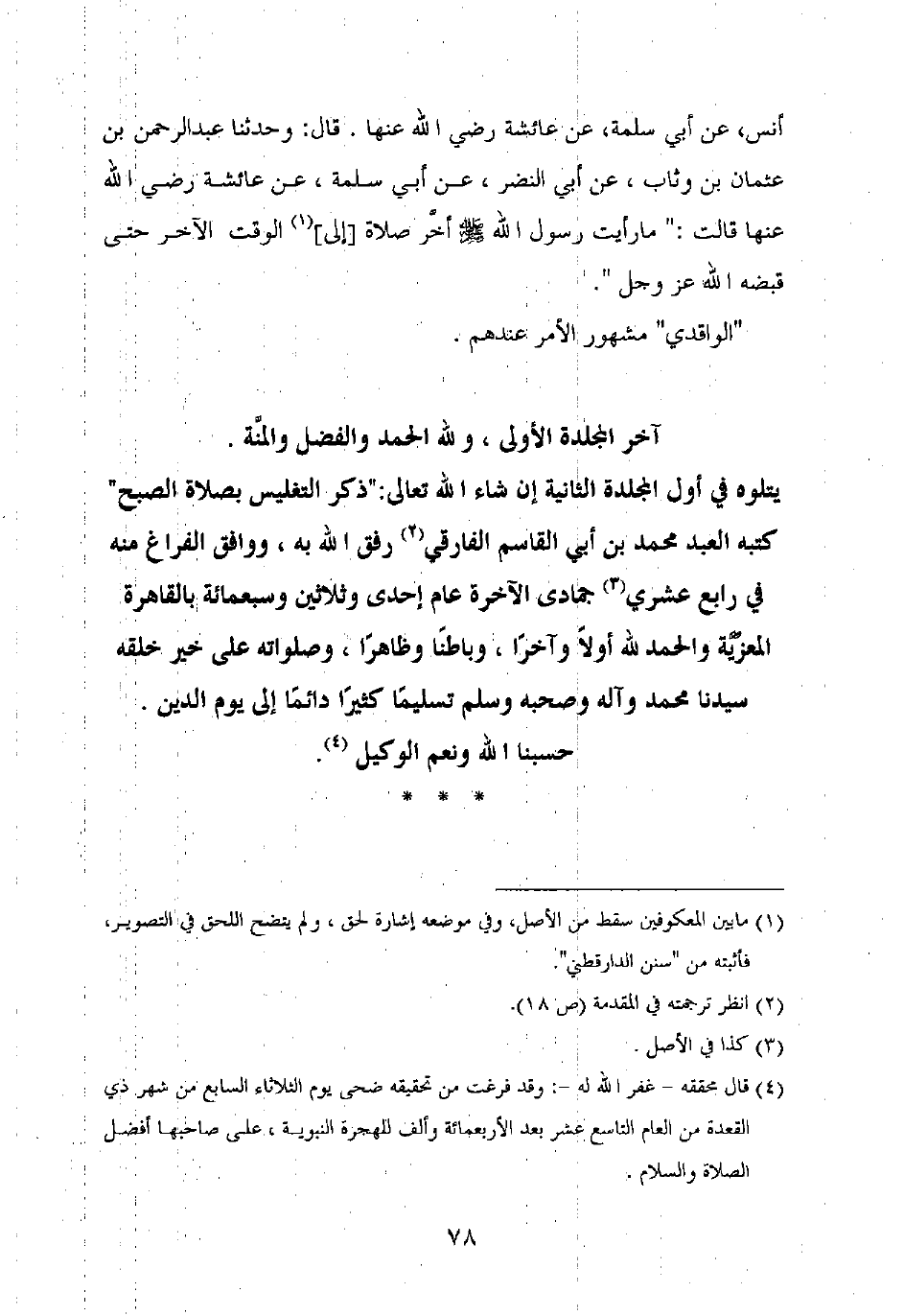 آخر المجلدة الأولى، ولله الحمد والفضل والمنة