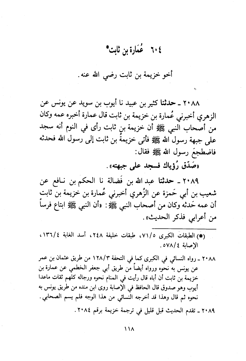 2088 - حَدَّثَنَا كَثِيرُ بْنُ عُبَيْدٍ، نا أَيُّوبُ بْنُ سُوَيْدٍ، عَنْ يُونُسَ، عَنِ الزُّهْرِيِّ، أَخْبَرَنِي عُمَارَةُ بْنُ خُزَيْمَةَ بْنِ ثَابِتٍ، قَالَ عُمَارَةُ: أَخْبَرَهُ عَمُّهُ، وَكَانَ مِنْ أَصْحَابِ النَّبِيِّ صَلَّى اللهُ عَلَيْهِ وَسَلَّمَ " أَنَّ خُزَيْمَةَ بْنَ ثَابِتٍ رَأَى فِي النَّوْمِ أَنَّهُ سَجَدَ عَلَى جَبْهَةِ رَسُولِ اللَّهِ صَلَّى اللهُ عَلَيْهِ وَسَلَّمَ فَأَتَى خُزَيْمَةُ بْنُ ثَابِتٍ إِلَى رَسُولِ اللَّهِ فَحَدَّثَهُ فَاضْطَجَعَ رَسُولُ اللَّهِ صَلَّى اللهُ عَلَيْهِ وَسَلَّمَ فَقَالَ: «§صَدِّقْ رُؤْيَاكَ فَسَجَدَ عَلَى جَبْهَتِهِ»