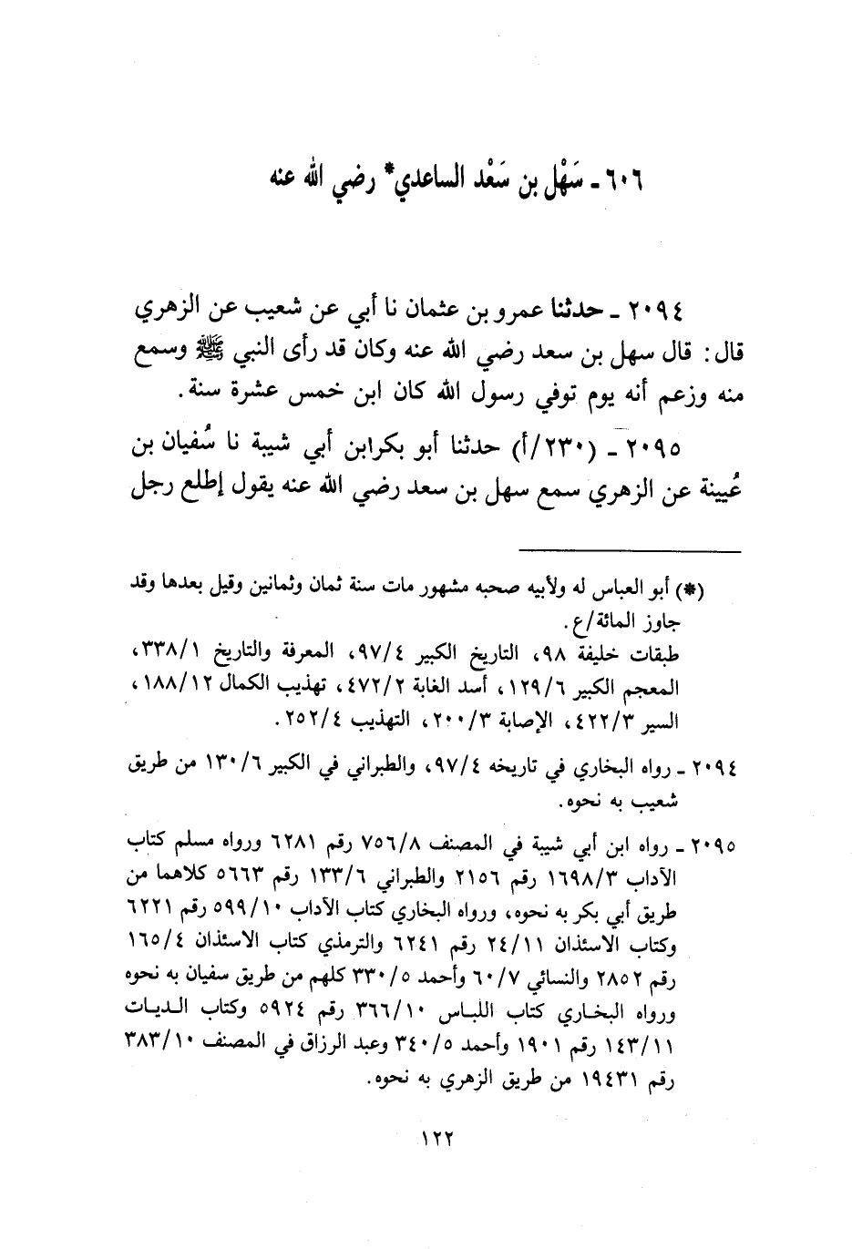 2094 - حَدَّثَنَا عَمْرُو بْنُ عُثْمَانَ، نا أَبِي، عَنْ شُعَيْبٍ، عَنِ الزُّهْرِيِّ، قَالَ: «§قَالَ سَهْلُ بْنُ سَعْدٍ رَضِيَ اللَّهُ عَنْهُ وَكَانَ قَدْ رَأَى النَّبِيَّ صَلَّى اللهُ عَلَيْهِ وَسَلَّمَ وَسَمِعَ مِنْهُ وَزَعَمَ أَنَّهُ يَوْمَ تُوُفِّيَ رَسُولُ اللَّهِ كَانَ ابْنَ خَمْسِ عَشْرَةَ سَنَةً»