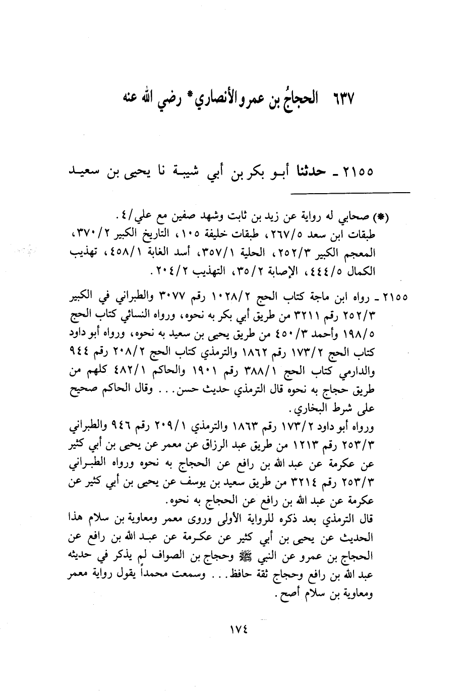 2155 - حَدَّثَنَا أَبُو بَكْرِ بْنُ أَبِي شَيْبَةَ، نا يَحْيَى بْنُ سَعِيدٍ -[175]-، وَإِسْمَاعِيلُ ابْنُ عُلَيَّةَ، عَنْ حَجَّاجِ بْنِ أَبِي عُثْمَانَ، حَدَّثَنِي يَحْيَى بْنُ أَبِي كَثِيرٍ، حَدَّثَنِي عِكْرِمَةُ، حَدَّثَنِي الْحَجَّاجُ بْنُ عَمْرٍو الْأَنْصَارِيُّ، رَضِيَ اللَّهُ عَنْهُ قَالَ: سَمِعْتُ رَسُولَ اللَّهِ صَلَّى اللهُ عَلَيْهِ وَسَلَّمَ يَقُولُ: «§مَنْ كُسِرَ أَوْ عَرَجَ فَقَدْ حَلَّ وَعَلَيْهِ حَجَّةٌ أُخْرَى» قَالَ: فَحَدَّثْتُ بِهِ أَبَا هُرَيْرَةَ وَابْنَ عَبَّاسٍ رَضِيَ اللَّهُ عَنْهُمَا فَقَالَا: صَدَقَ