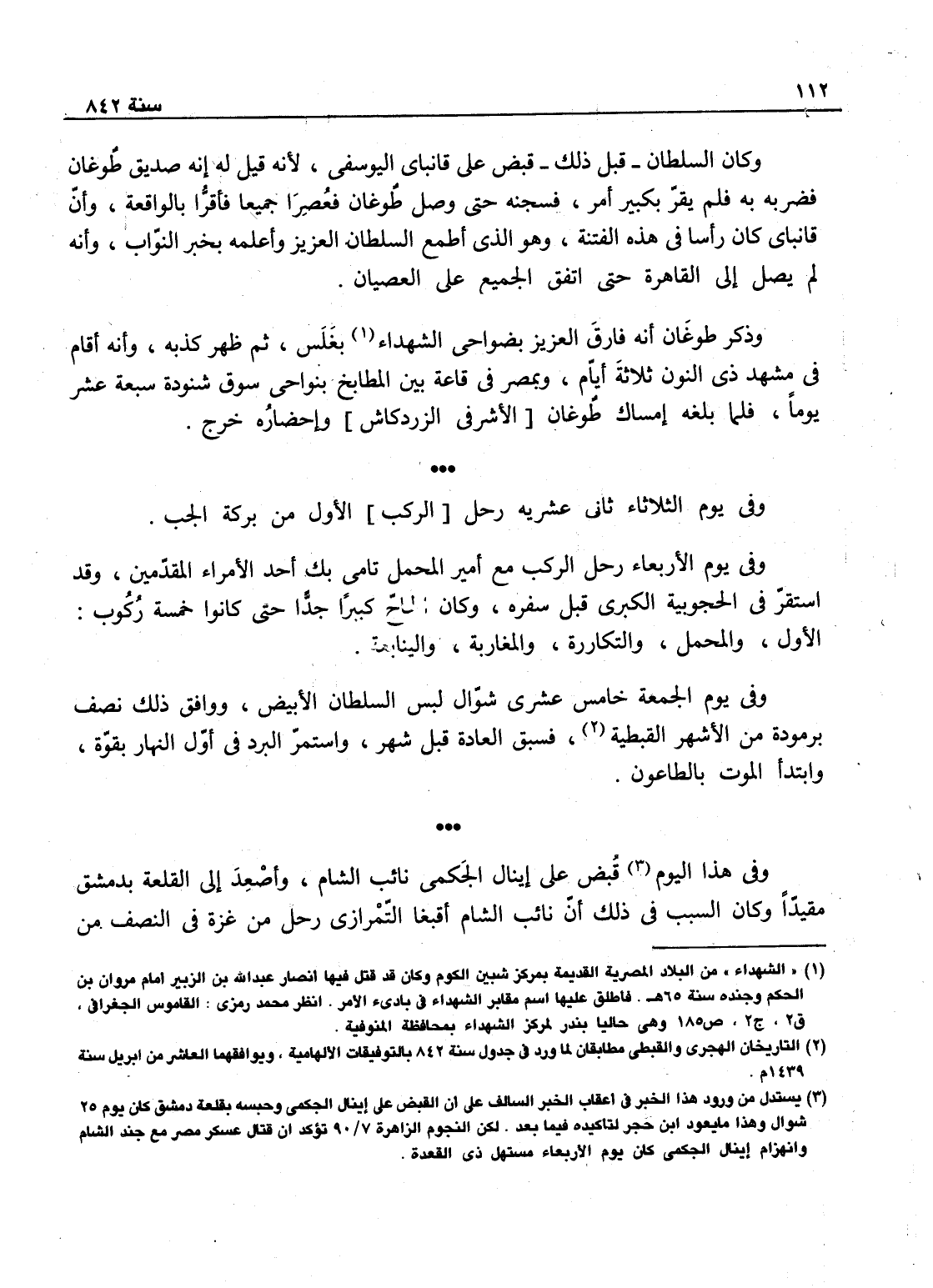 وفي يوم الجمعة خامس عشري شوال لبس السلطان الأبيض ووافق نصف برمودة من أشهر القبط فسبق العادة قبل شهر، واستمر البرد في أول النهار بقوة وابتدأ الموت بالطاعون، وفي هذا اليوم قبض على أينال الجكمي نائب الشام وأصعد إلى القلعة بدمشق مقيدا، وكان السبب في ذلك أن نائب الشام آقبغا التمرازي رحل من غزة في النصف