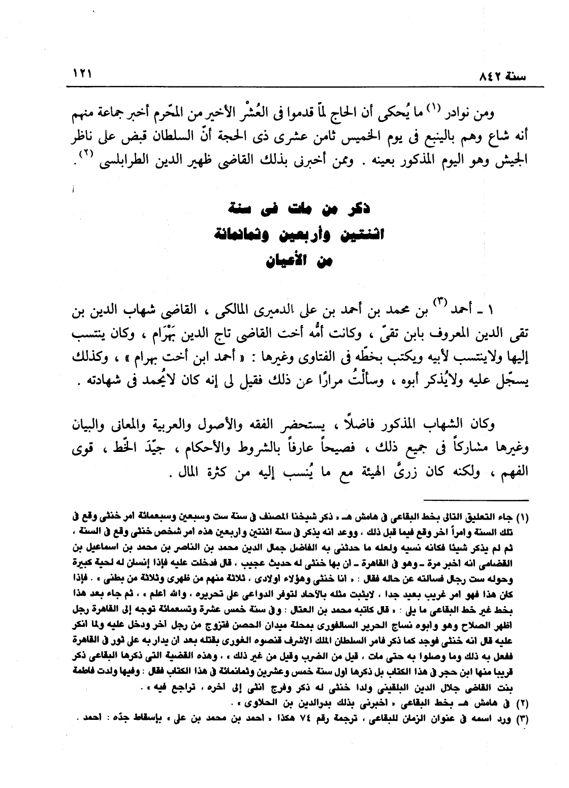 في سنة إثنتين وأربعين وثمانمائة من الأعيان.