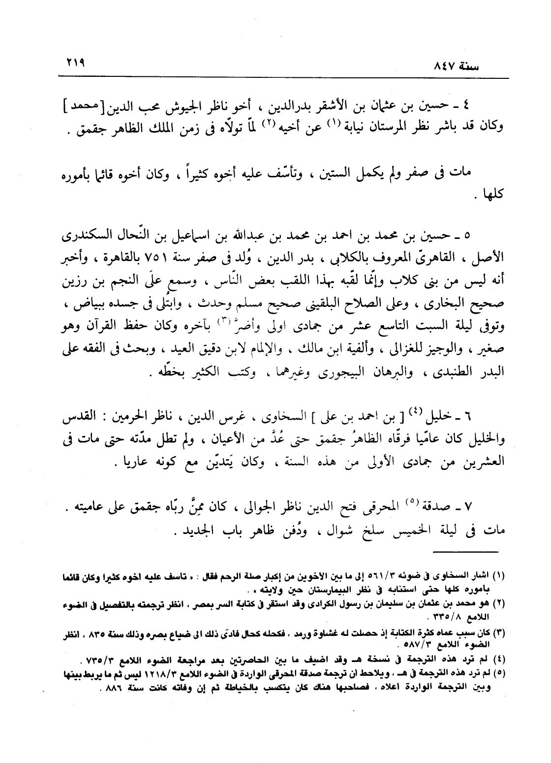 خليل السخاوي غرس الدين ناظر الحرمين القدس والخليل، كان عامياً ورقاه الظاهر جقمق حتى عد من الأعيان، ولم تطل مدته حتى مات ليلة العشرين من جمادى الأولى وكان يتدين مع كونه عارياً.