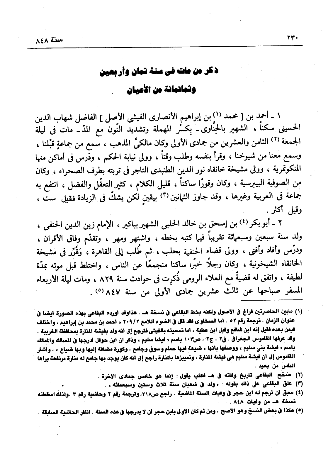 في سنة ثمان وأربعين وثمانمائة من الأعيان