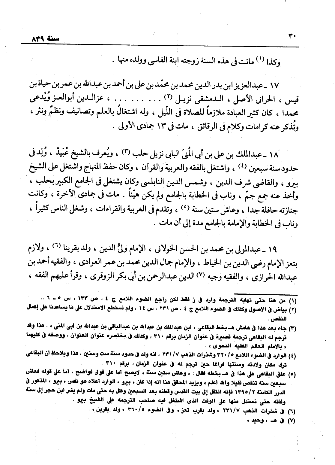 عبد العزيز بن بدر الدين محمد بن محمد بن علي بن أحمد بن عبد الله ابن عمر بن حياة بن قيس، الحراني الأصل الدمشقي نزيل.... عز الدين أبو العز ويدعى محمداً، كان كثير العبادة ملازماً للصلاة في الليل، وله اشتغال بالعلم وتصانيف ونظم ونثر، ويذكر عنه كرامات وكلام في الرقائق. مات في 13 جمادى الأولى.