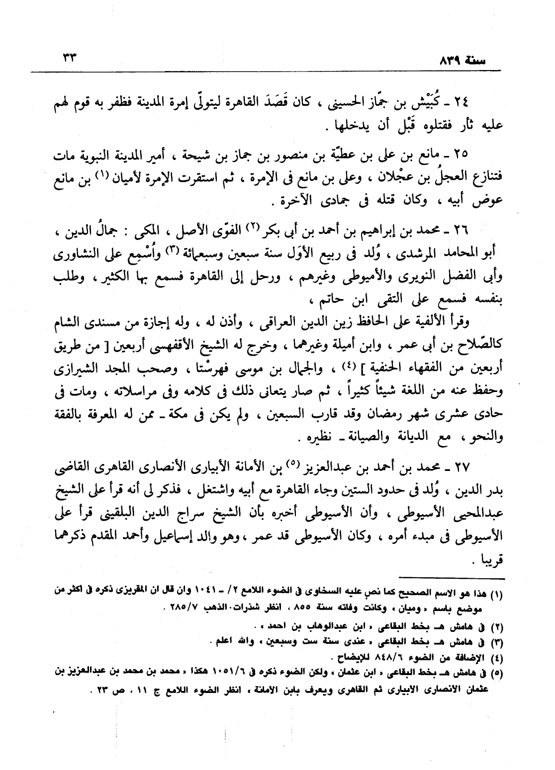 محمد بن أحمد بن عبد العزيز بن الأمانة، الأبياري ثم القاهري القاضي بدر الدين، ولد في حدود الستين وقدم القاهرة مع أبيه واشتغل، فذكر لي أنه قرأ على الشيخ عبد الخالق الأسيوطي وأن الأسيوطي أخبره أن الشيخ سراج الدين البلقيني قرأ على الأسيوطي في مبتدأ أمره وكان الأسيوطي قد عمر، وهو والد إسماعيل وأحمد المقدم ذكرهما قريباً،
