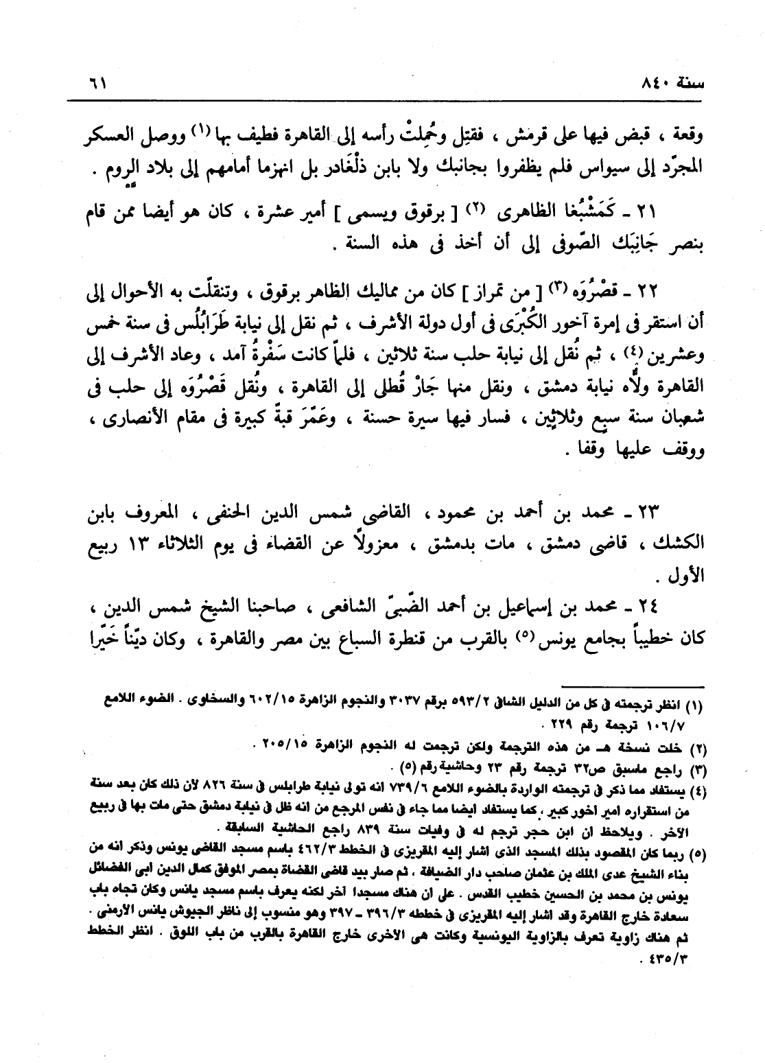 وقعة قبض فيها على قرمش فقتل. فحملت رأسه إلى القاهرة فطيف بها، ووصل العسكر المجرد إلى سيواس فلم يظفروا بجانبك ولا بابن دلغادر بل انهزما أمامهم إلى بلاد الروم.
