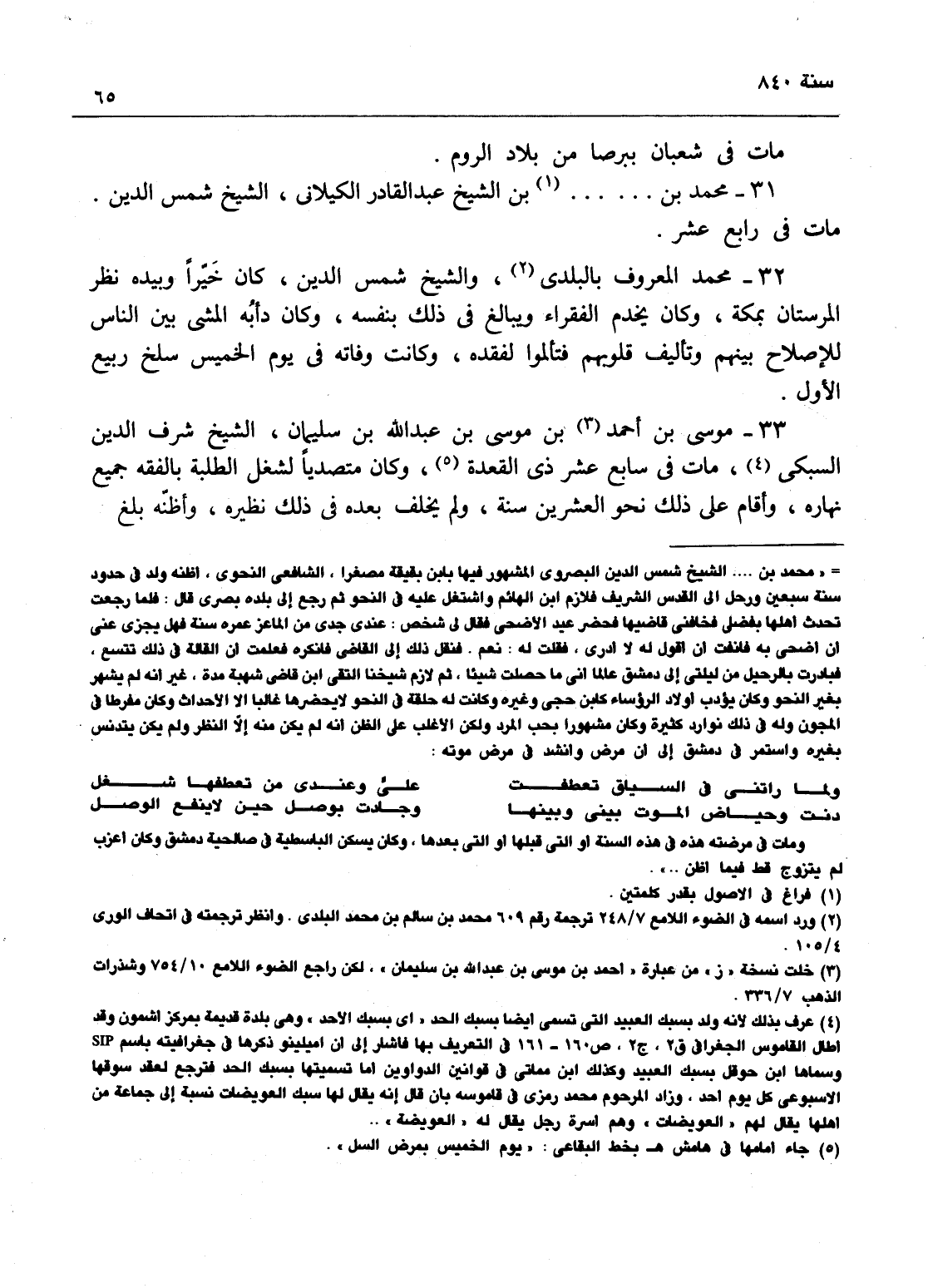 محمد بن ... بن الشيخ عبد القادر الكيلاني، الشيخ شمس الدين مات في رابع صفر.