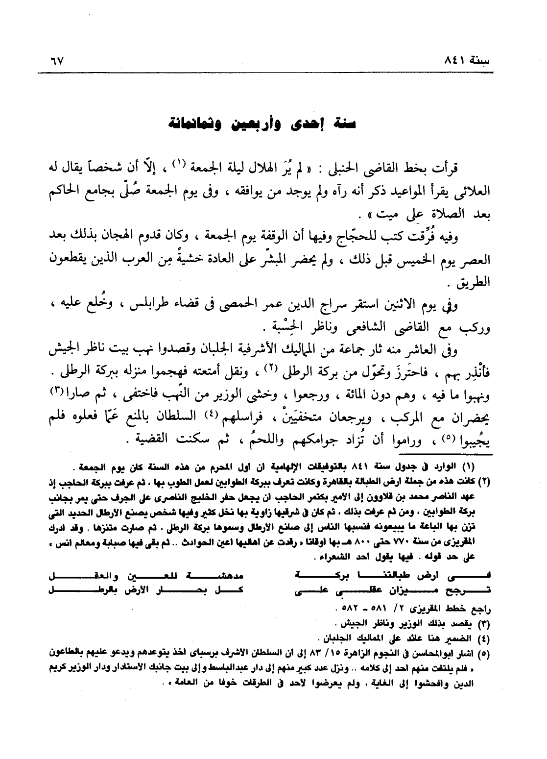 قرأت بخط القاضي الحنبلي: لم ير الهلال ليلة الجمعة إلا أن شخصاً يقال له العاملي يقرأ المواعيد ذكر أنه رآه ولم يوجد من يوافقه، وفي يوم الجمعة صلى بجامع الحاكم بعد الصلاة على ميت ...