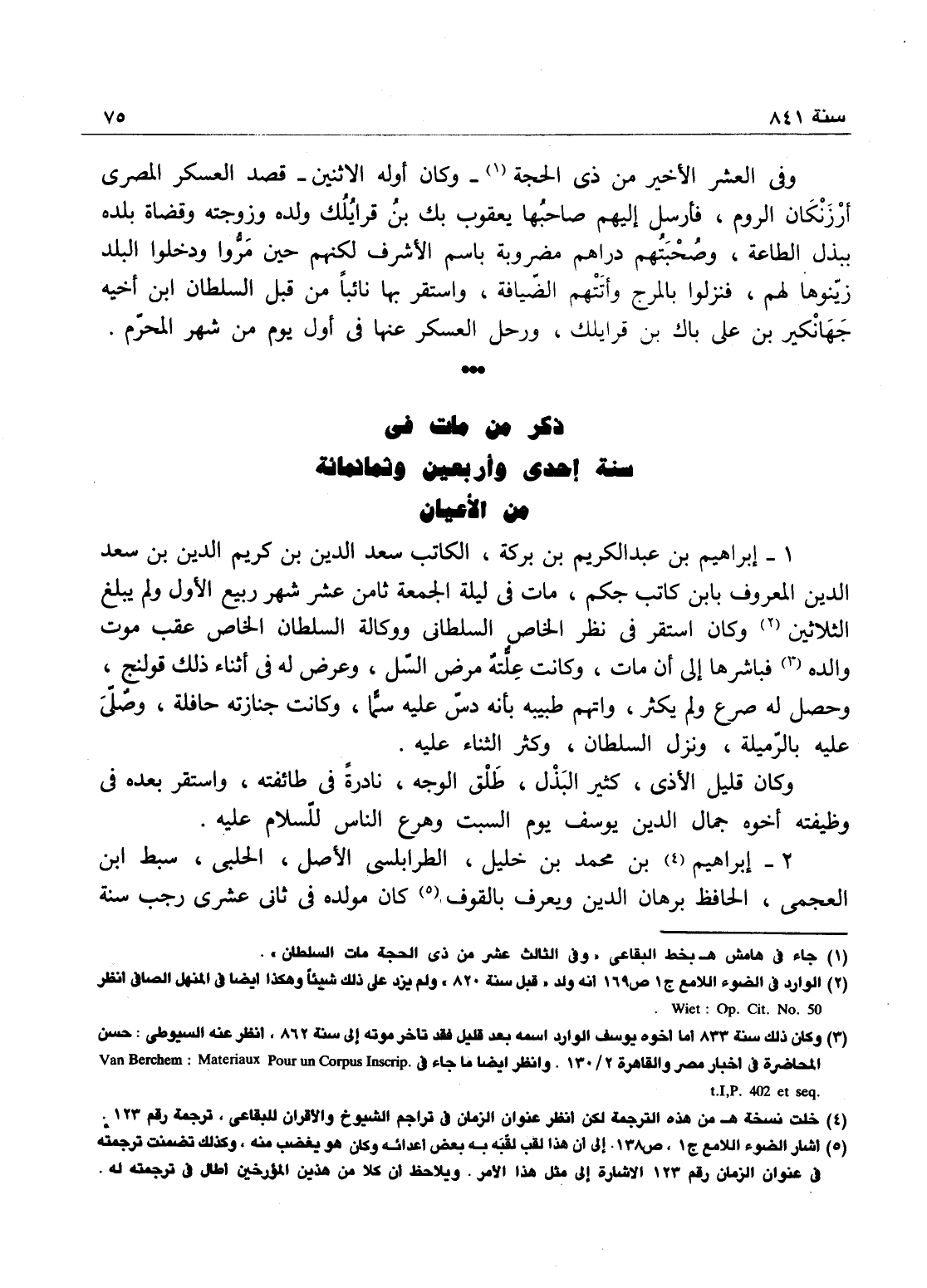 في سنة إحدى وأربعين وثمانمائة من الأعيان.
