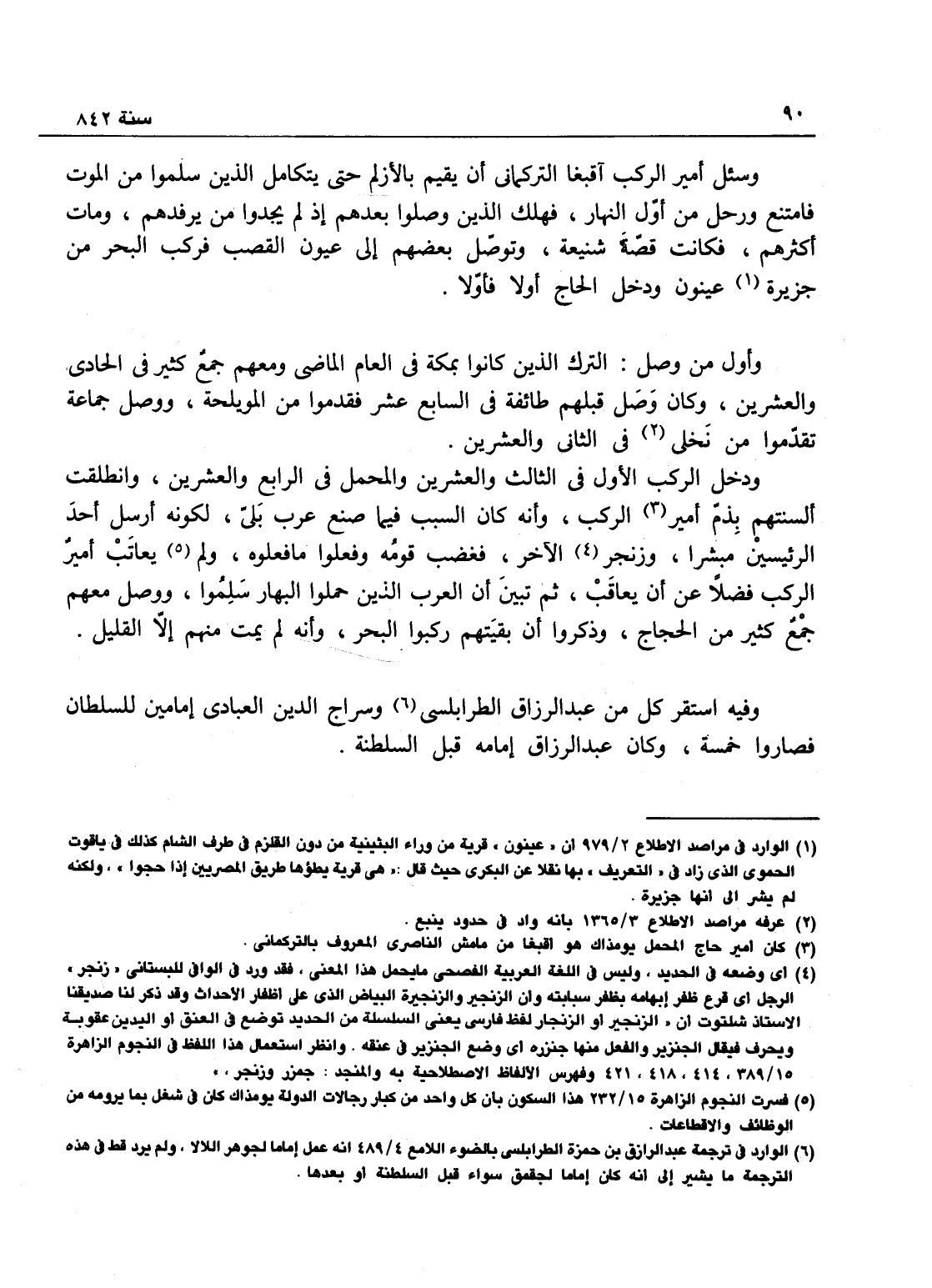 وفيه استقر كل من عبد الرزاق الطرابلسي وسراج الدين العبادي إماماً للسلطان فصاروا خمسة، وكان عبد الرزاق إمامه قبل السلطنة.