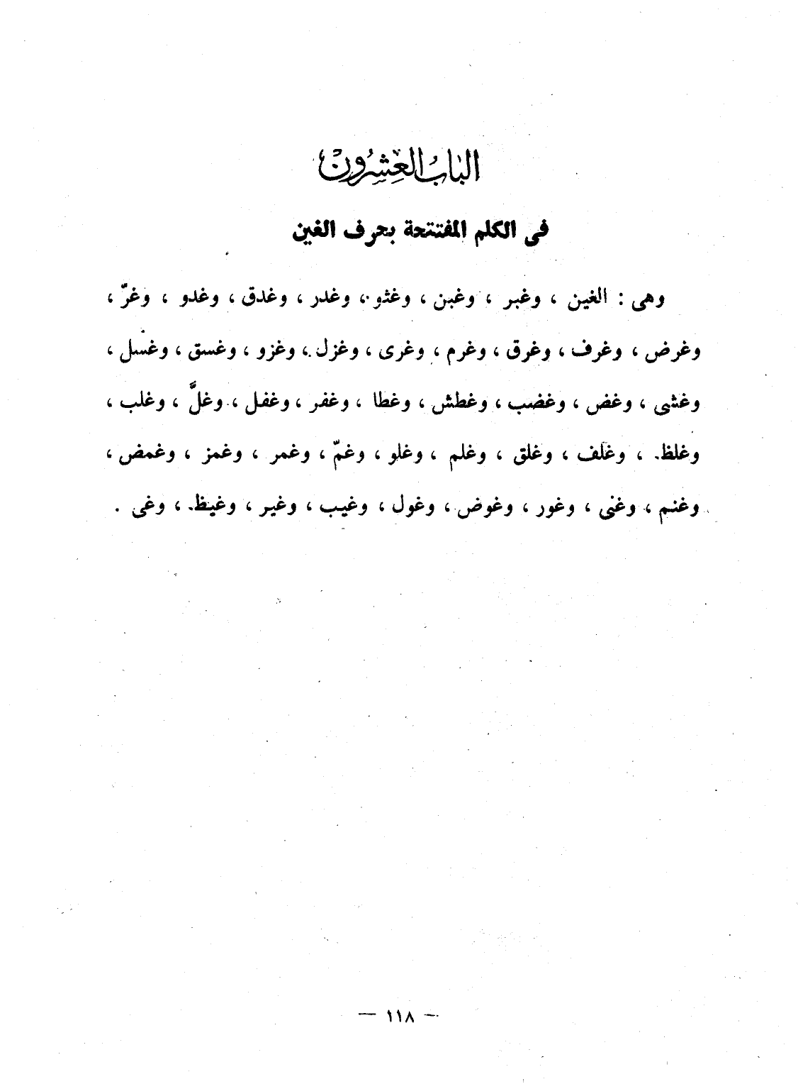 الباب العشرون - فى الكلم المفتتحة بحرف الغين