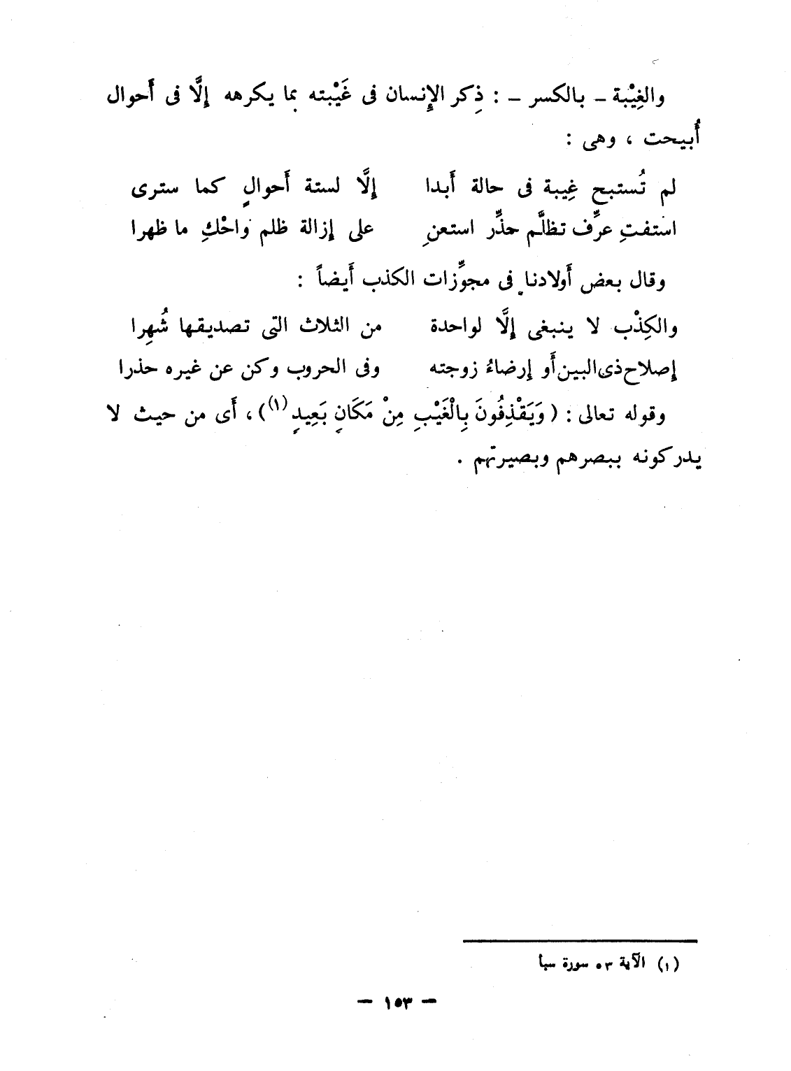 لم تُستبح غِيبة فى حالة أَبدا ... إِلاَّ لستة أَحوالٍ كما سترى