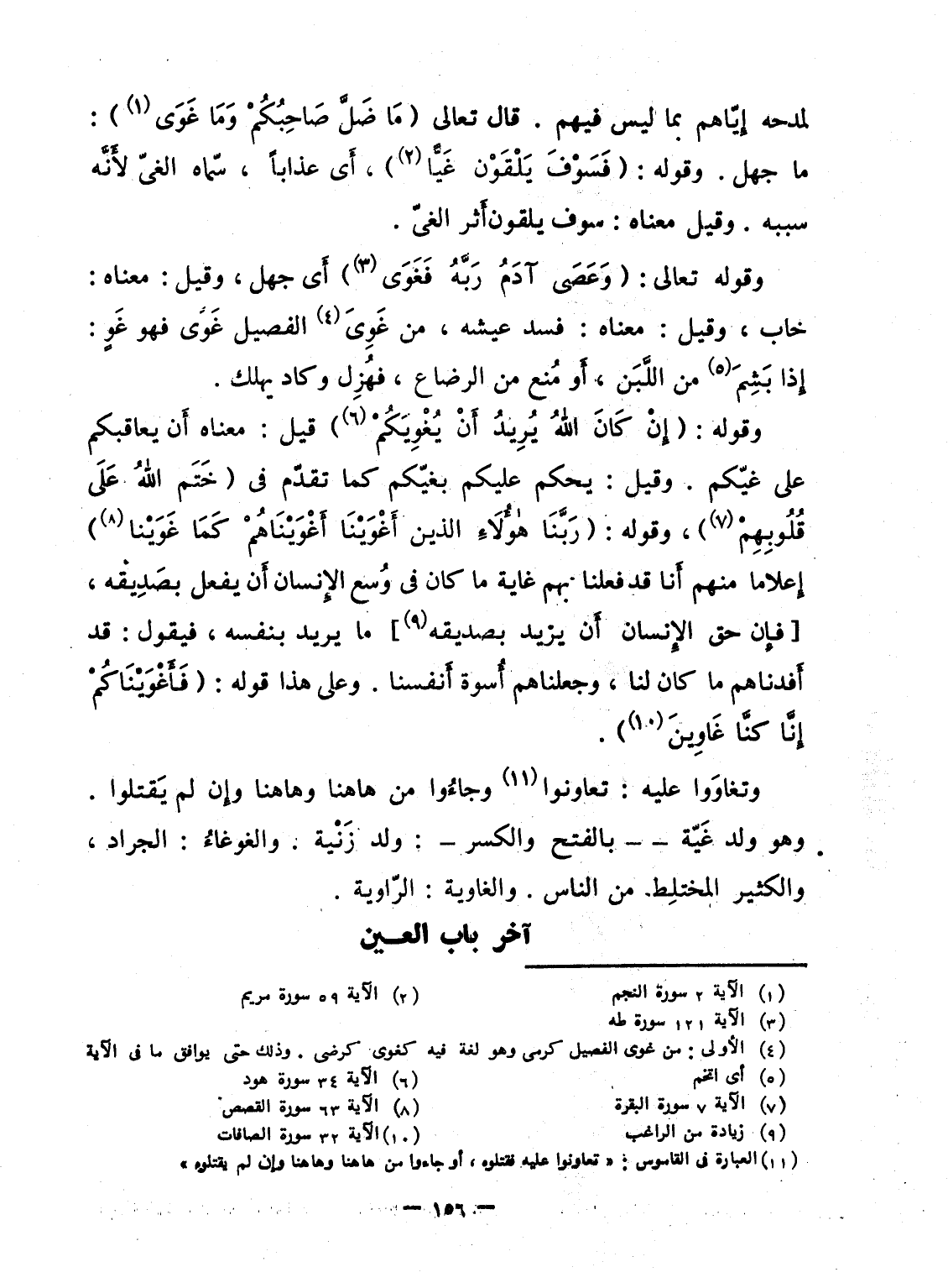 لمدحه إِيّاهم بما ليس فيهم. قال تعالى: {مَا ضَلَّ صَاحِبُكُمْ وَمَا غوى} : ما جهل. وقوله: {فَسَوْفَ يَلْقُونَ غَيّاً} ، أَى عذاباً، سّماه الغىّ لأَنَّه سببه. وقيل معناه: سوف يلقون أَثر الغىّ.