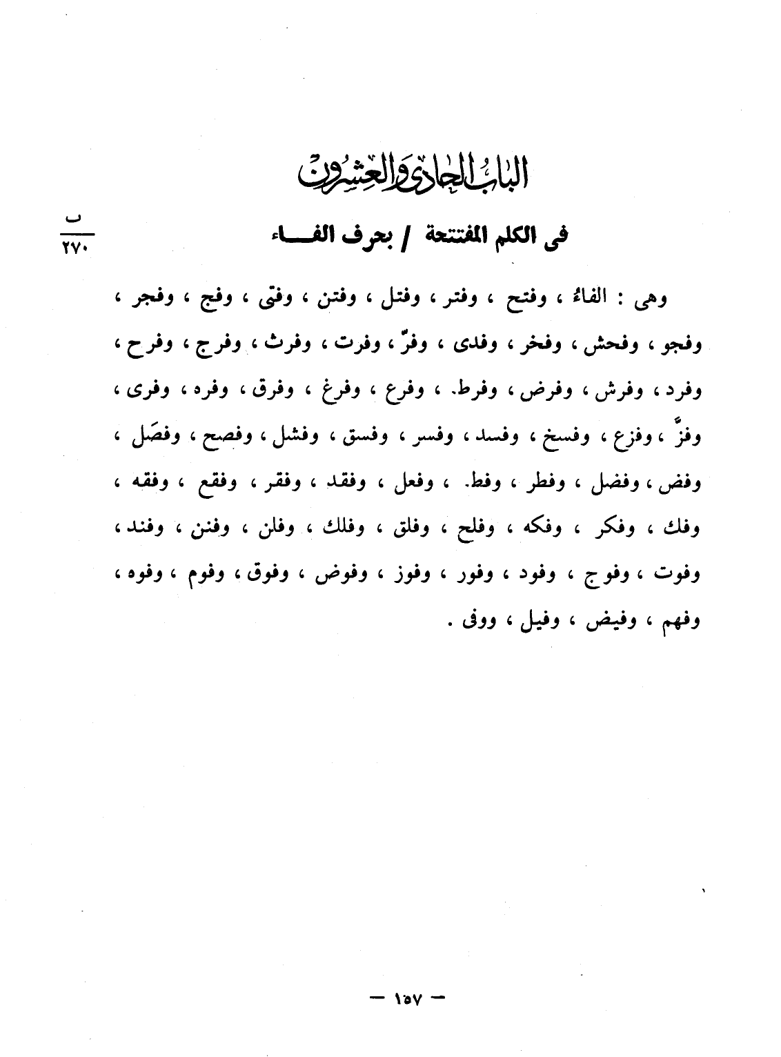 الباب الحادى والعشرون - فى الكلم المفتتحة بحرف الفاء