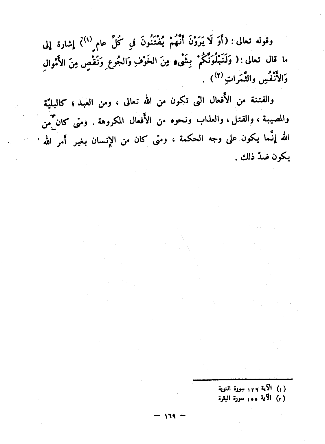 والفتنة من الأَفعال التى تكون من الله تعالى، ومن العبد؛ كالبليّة والمصيبة، والقتل، والعذاب ونحوه من الأَفعال المكروهة. ومتى كان من الله إِنَّما يكون على وجه الحكمة، ومتى كان من الإِنسان بغير أَمر الله يكون ضدّ ذلك.