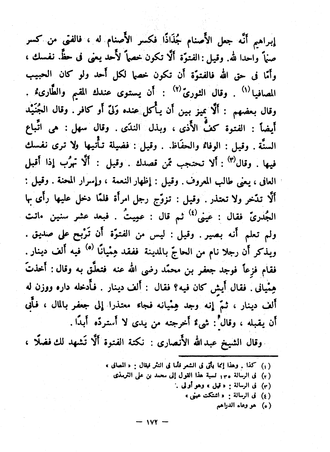 وقال الشيخ عبد الله الأَنصارى: نكتة الفتوة أَلاَّ تَشهد لك فضلاً،