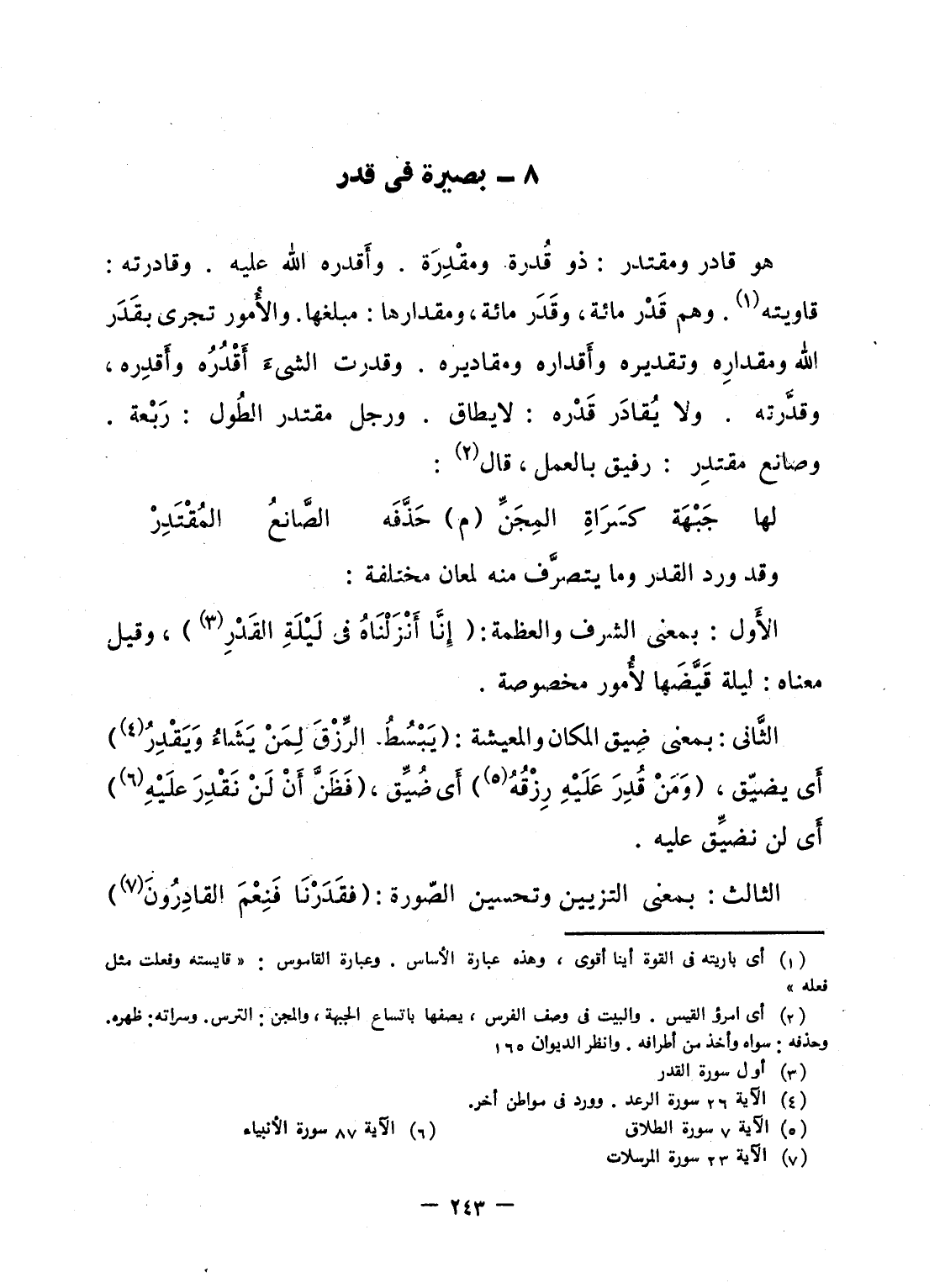 وقد ورد القدر وما يتصرَّف منه لمعان مختلفة: