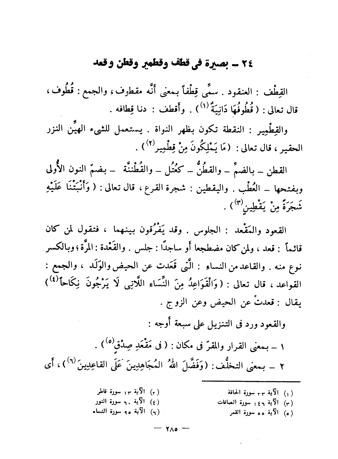 بصيرة فى قطف وقطمير وقطن وقعد