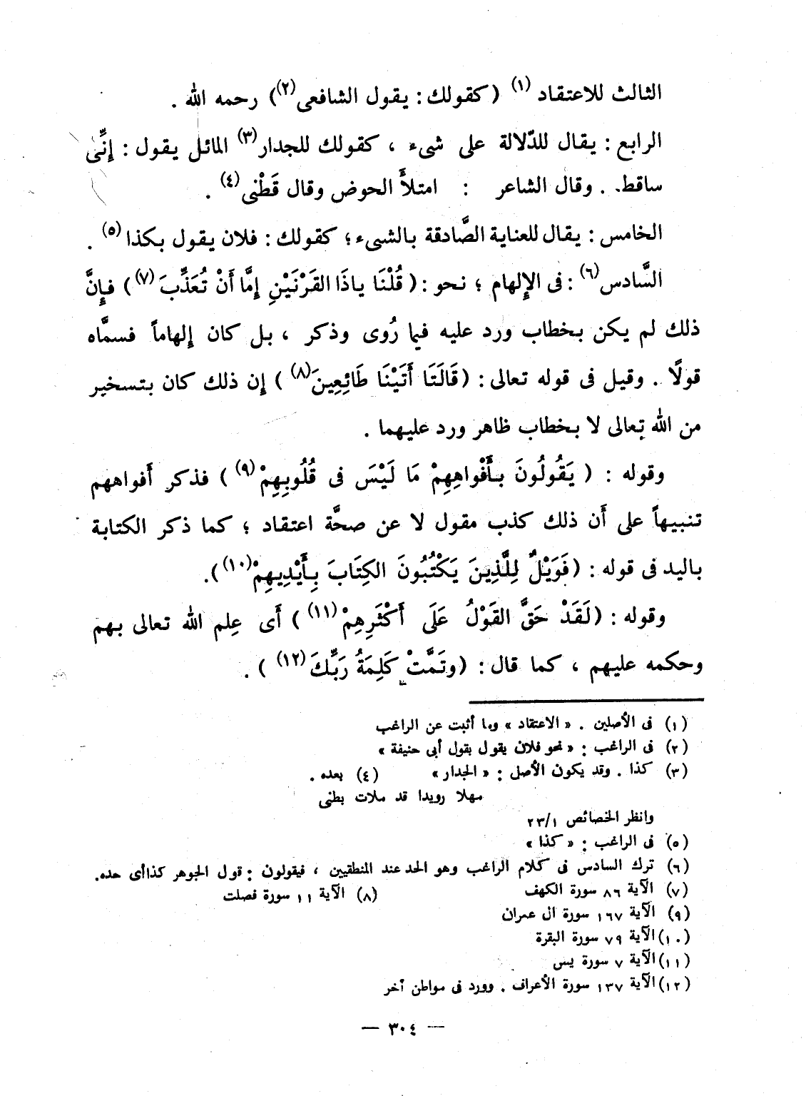 الثالث للاعتقاد (كقولك: يقول الشافعى) رحمه الله.