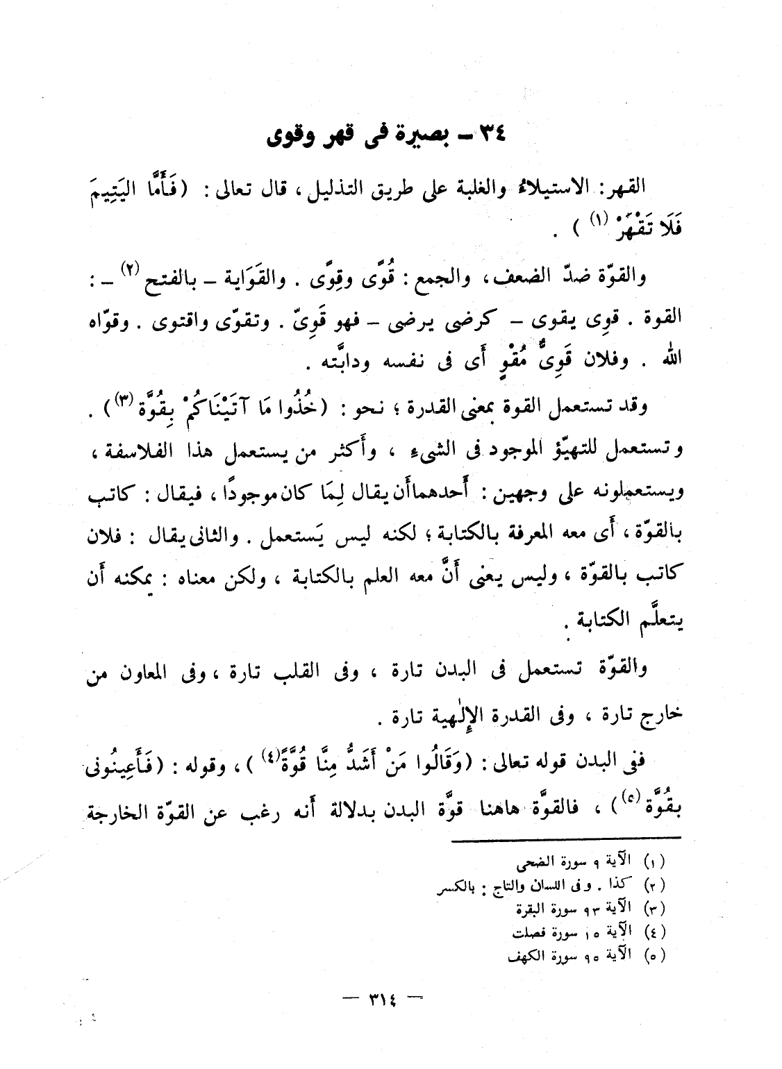 والقوّة تستعمل فى البدن تارة، وفى القلب تارة، وفى المعاون من خارج تارة، وفى القدرة الإِلهية تارة.