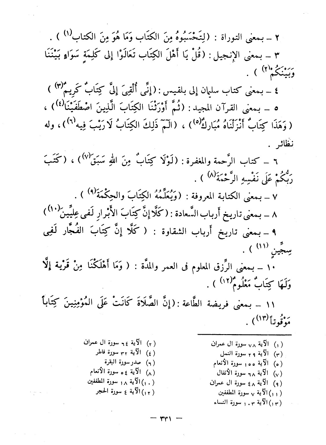 5- بمعنى القرآن المجيد: {ثُمَّ أَوْرَثْنَا الكتاب الذين اصطفينا} ، {وهاذا كِتَابٌ أَنزَلْنَاهُ مُبَارَكٌ} ، {الم ذَلِكَ الكتاب لاَ رَيْبَ فِيهِ} ، وله نظائر.