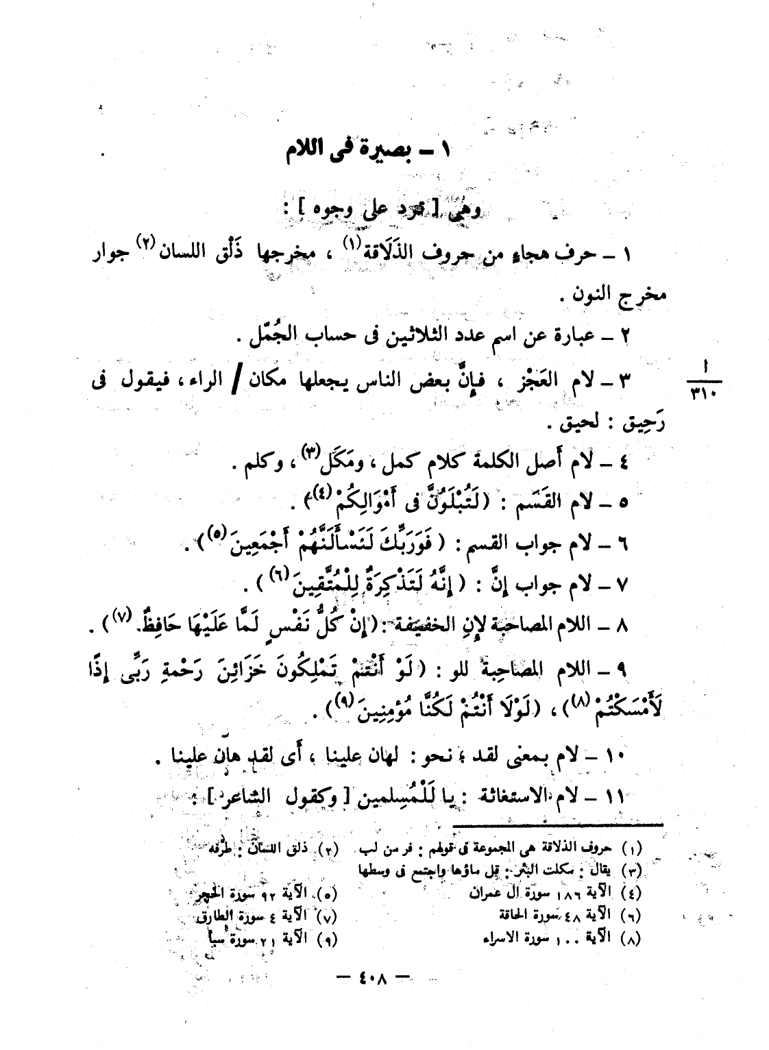 8- اللام المصاحبة لإِنِ الخفيفة: {إِن كُلُّ نَفْسٍ لَّمَّا عَلَيْهَا حَافِظٌ} .