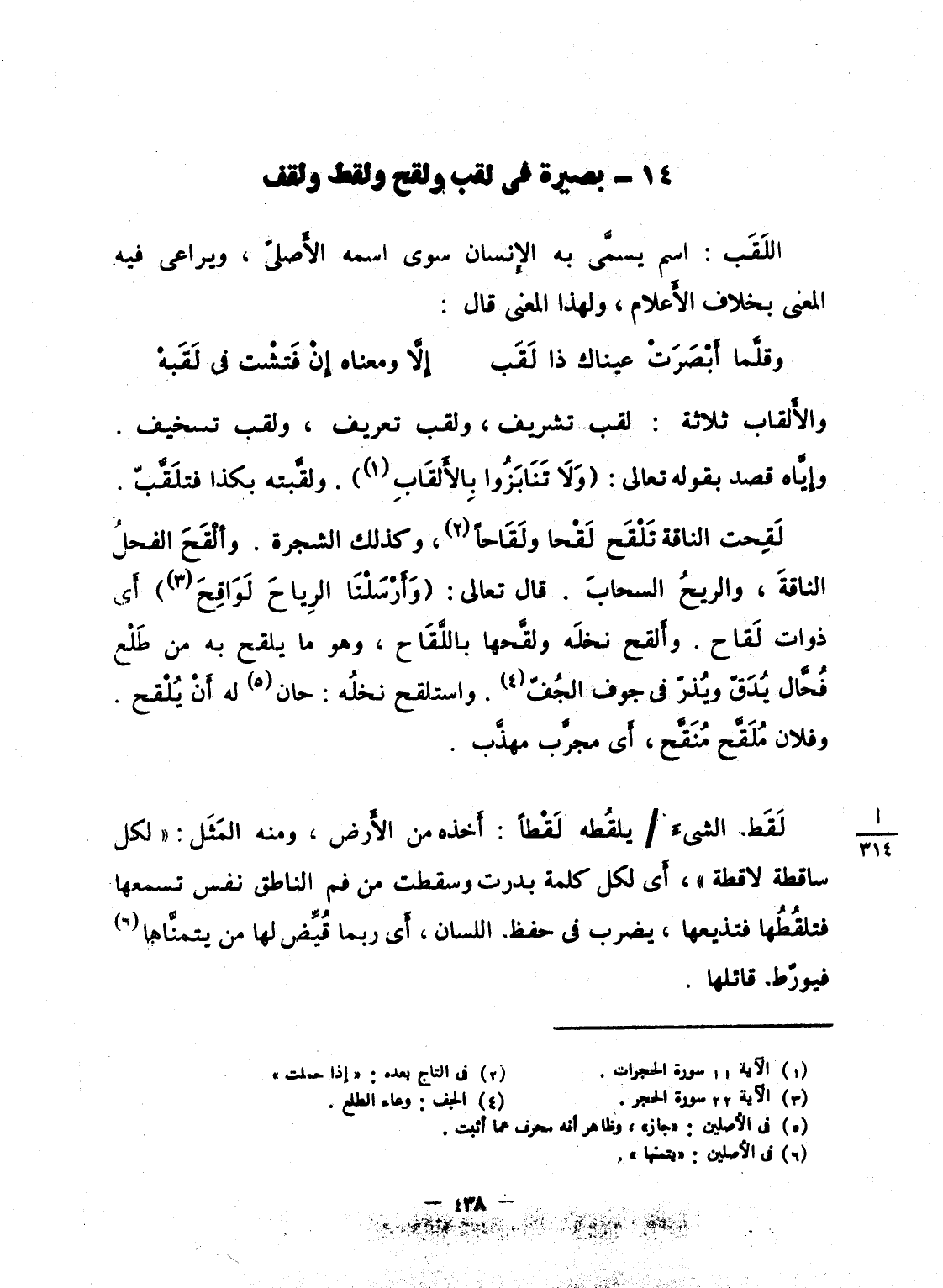 وقلَّما أَبْصَرَتْ عيناك ذا لَقَب ... إِلاَّ ومعناه إِنْ فَتشْت فى لَقَبهْ