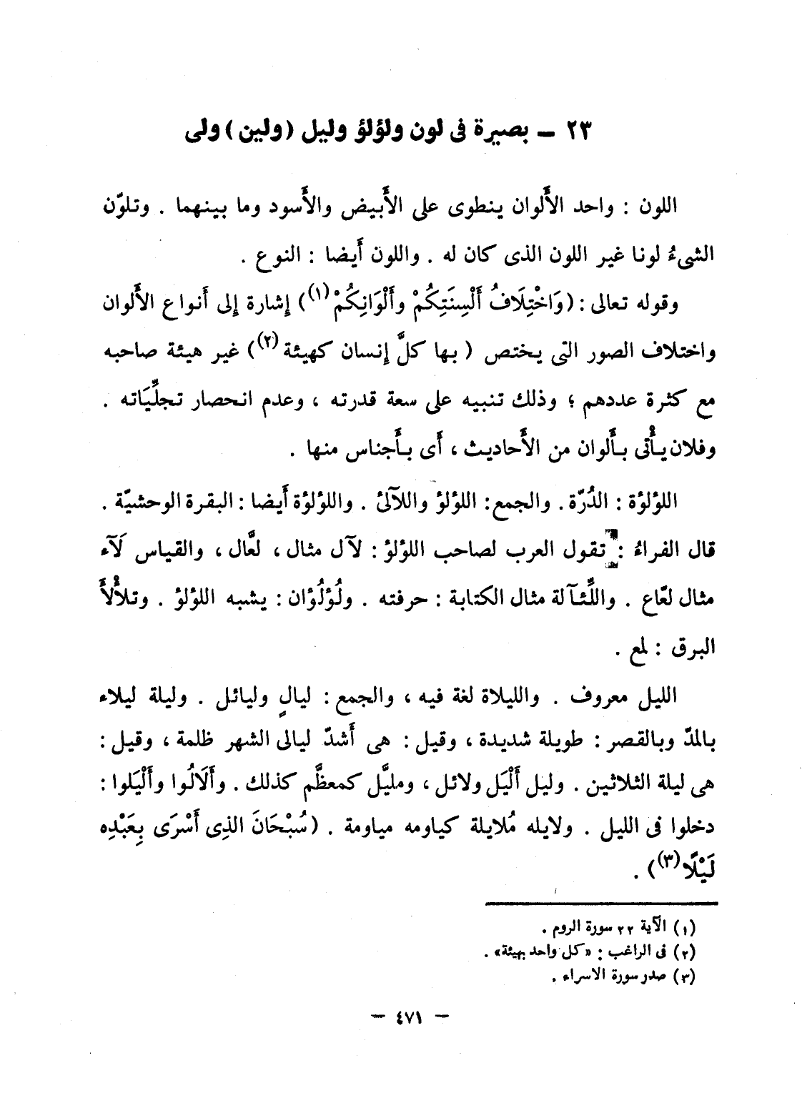 بصيرة فى لون ولؤلؤ وليل (ولين) ولى
