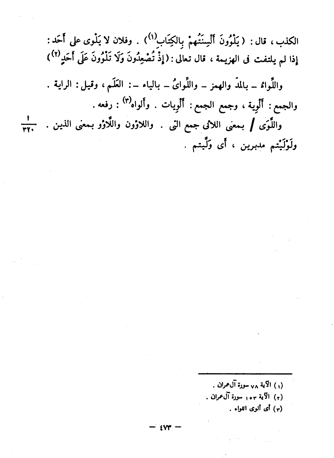 واللَّوَى / بمعنى اللائى جمع التى. واللاؤون واللاَّؤو بمعنى الذين. ولَوْلَيْتم مدبرين، أَى وَلَّيتم.