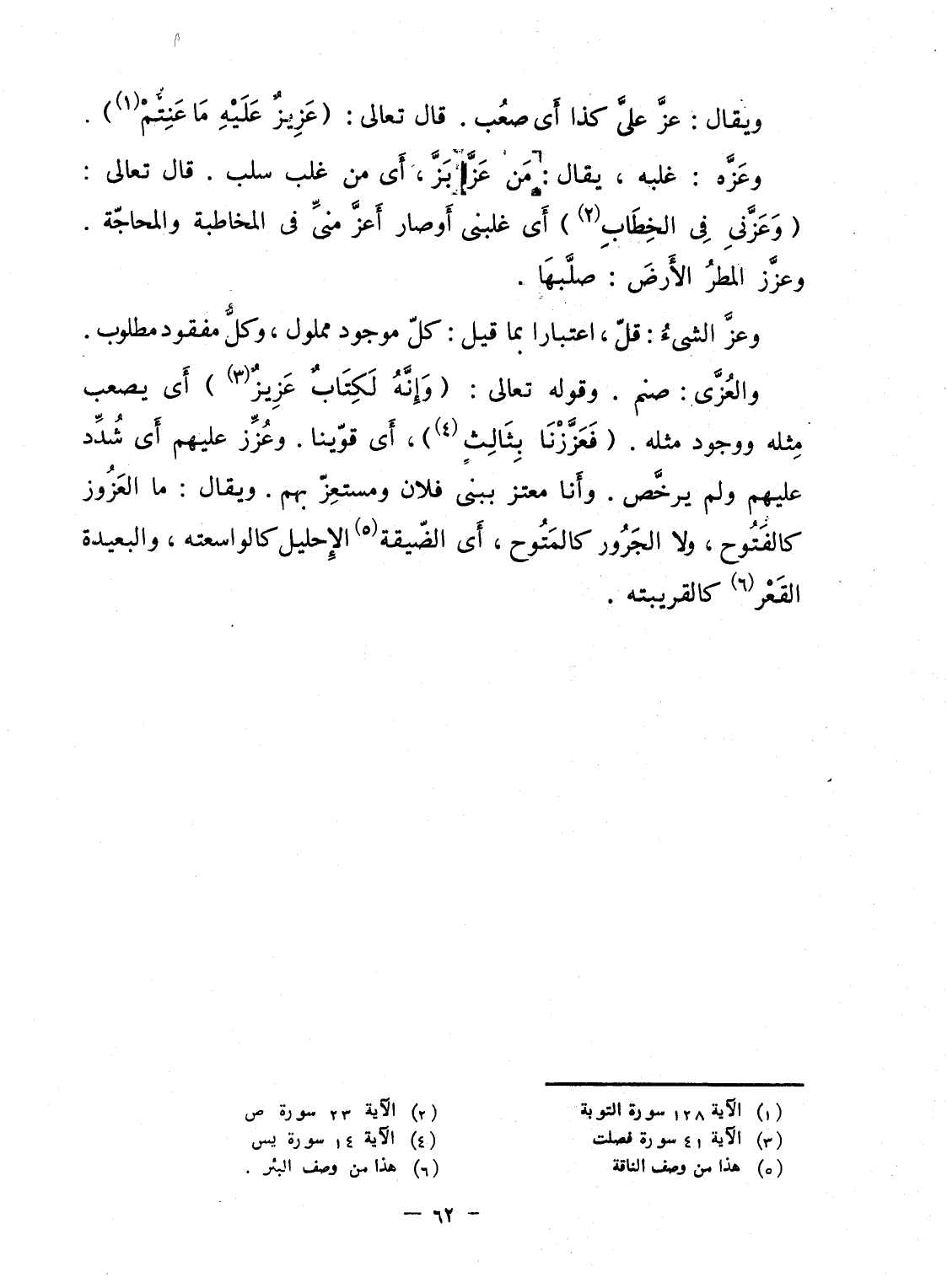 ويقال: عزَّ علىَّ كذا أَى صعُب. قال تعالى: {عَزِيزٌ عَلَيْهِ مَا عَنِتُّمْ} .