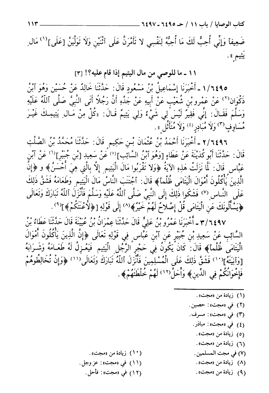 ( 11 ما للوصي من مال اليتيم إذا قام عليه )