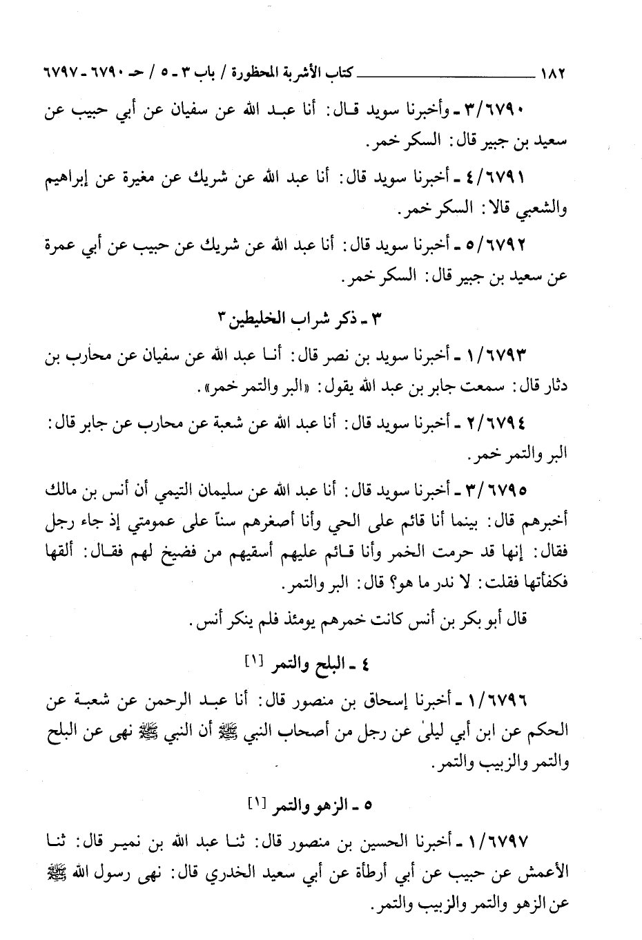 6791 - أخبرنا سويد قال أنا عبد الله عن شريك عن مغيرة عن إبراهيم والشعبي قالا : السكر خمر