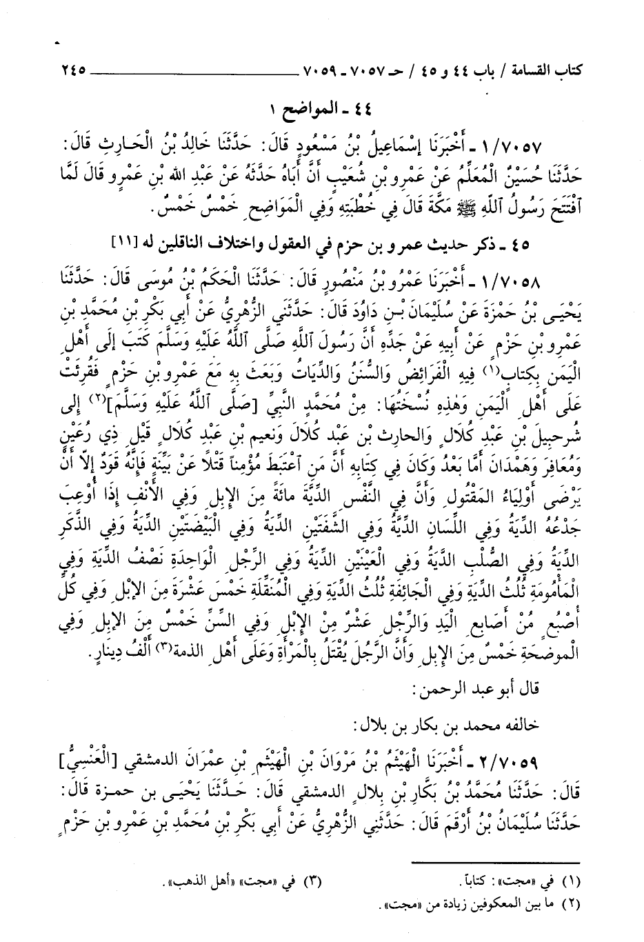 ( 45 ذكر حديث عمرو بن حزم في العقول واختلاف الناقلين له )
